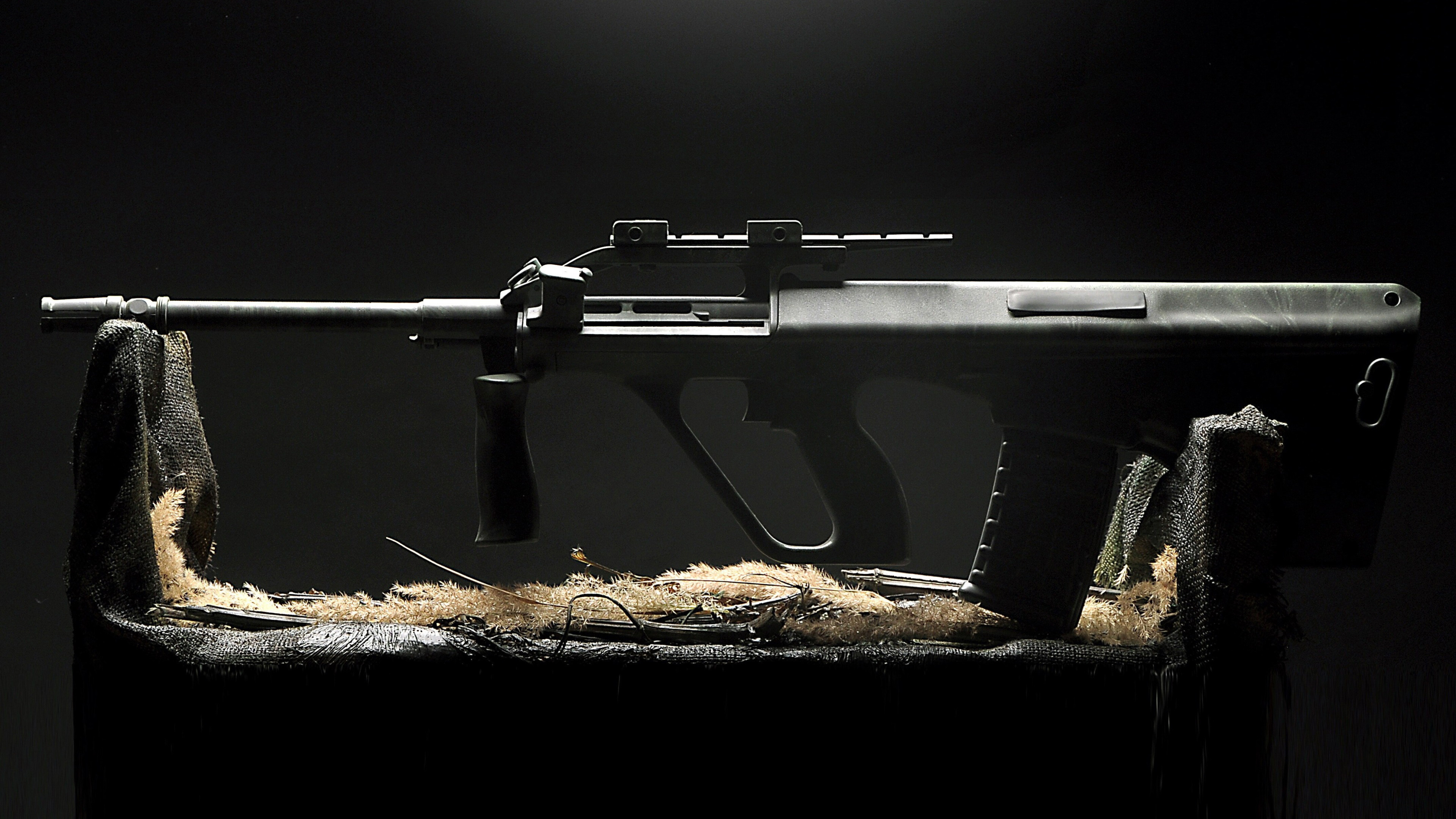 Обои 3840x2160 штейр ауг, орудие, черный, оружие, винтовка, 4K Ultra HD картинка