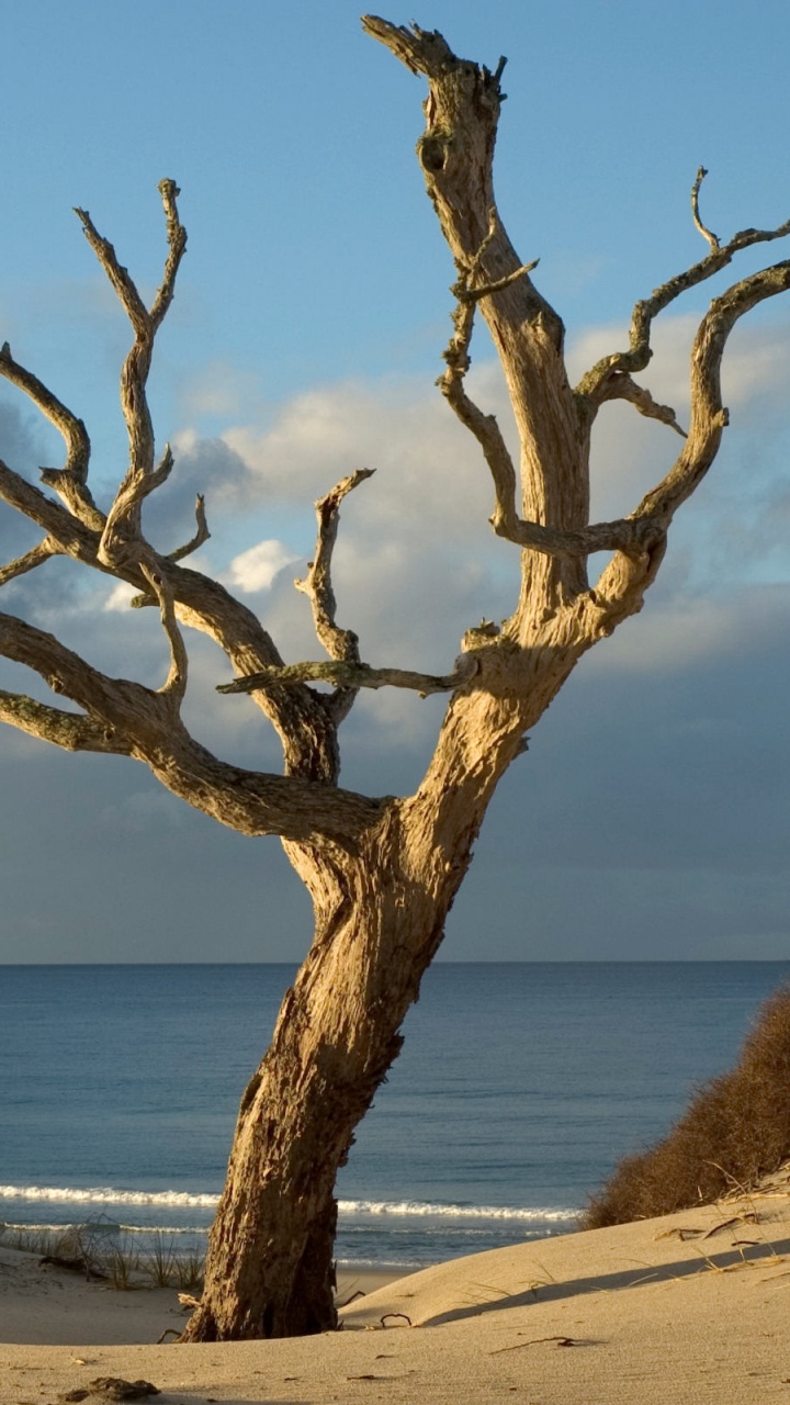 Обои дерево, ветвь, древесина, плавник, море для HD Samsung Galaxy S3/J3/J4/J5, Meizu M5, Sony Xperia L1/L2, заставка, 720x1280 картинка