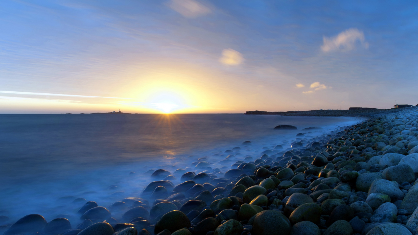 Обои 1366x768 водоем, море, горизонт, берег, океан, HD ready картинка