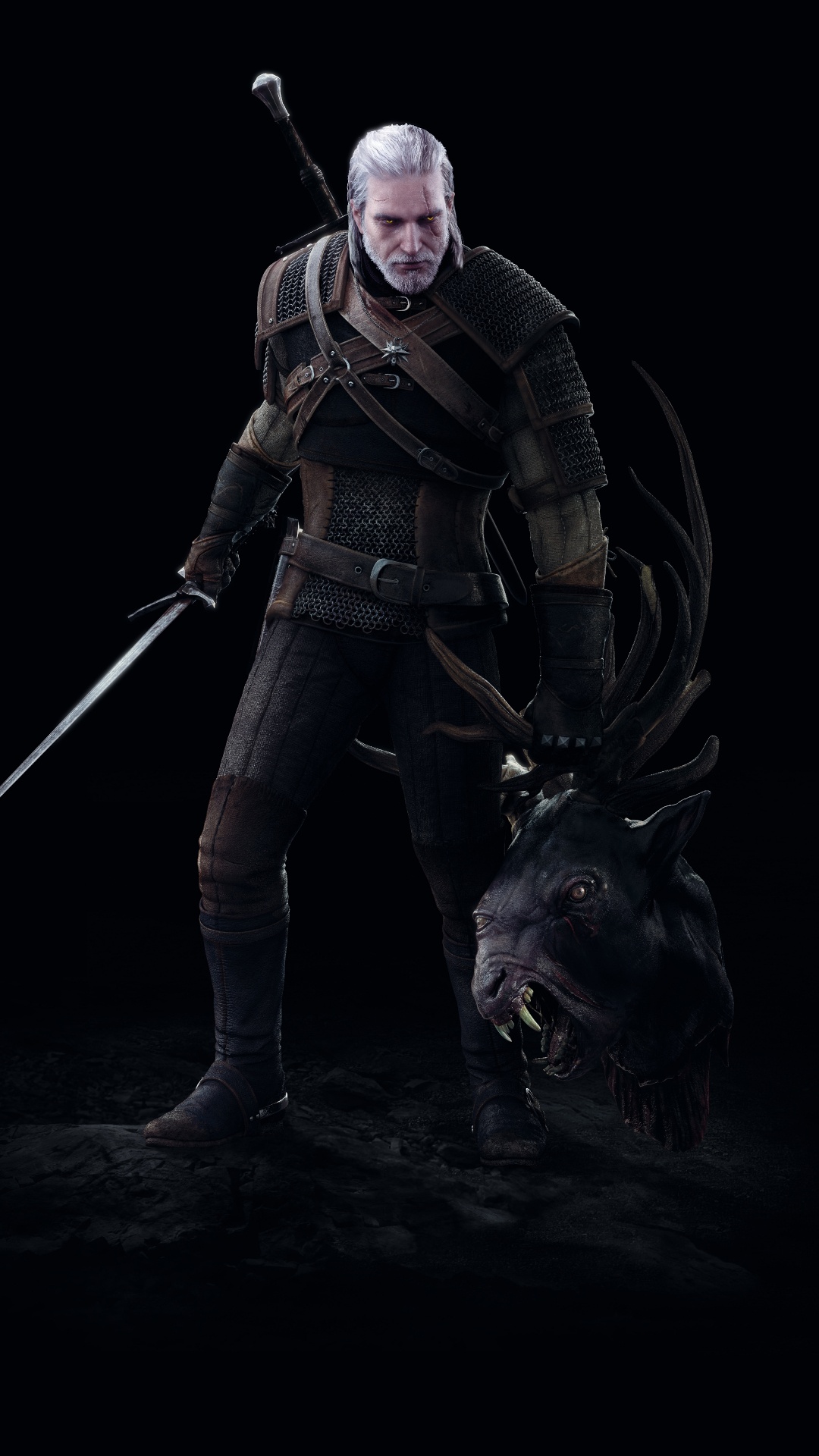 Обои Ведьмак 3 дикая охота, Геральт из ривии, темнота, фигурка, верхняя одежда на телефон Android, 1080x1920 Full HD картинки