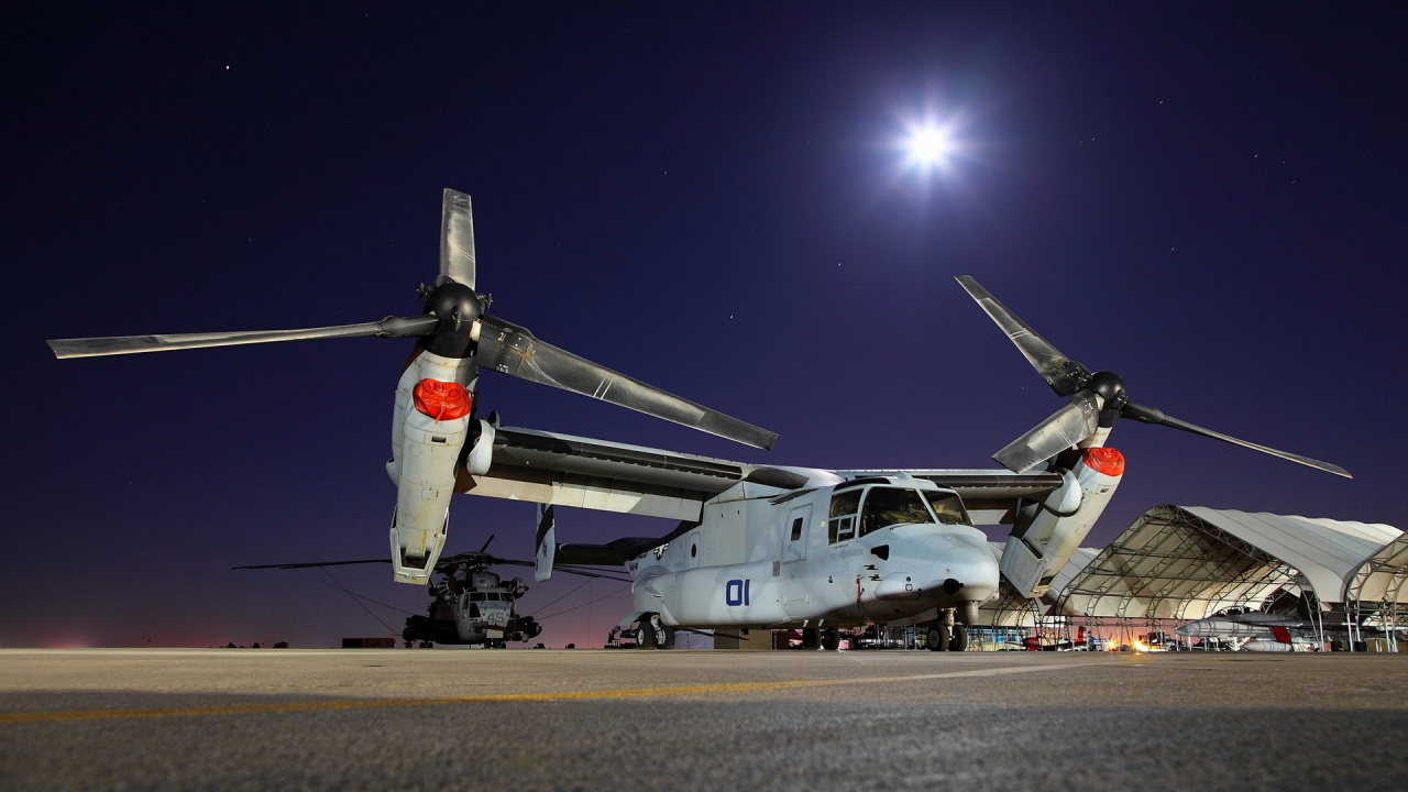 Обои 1280x720 конвертоплан, авиация, винтокрылая машина, авиакомпания, корпус морской пехоты США, HD, HDV, 720p, 16:9 картинка