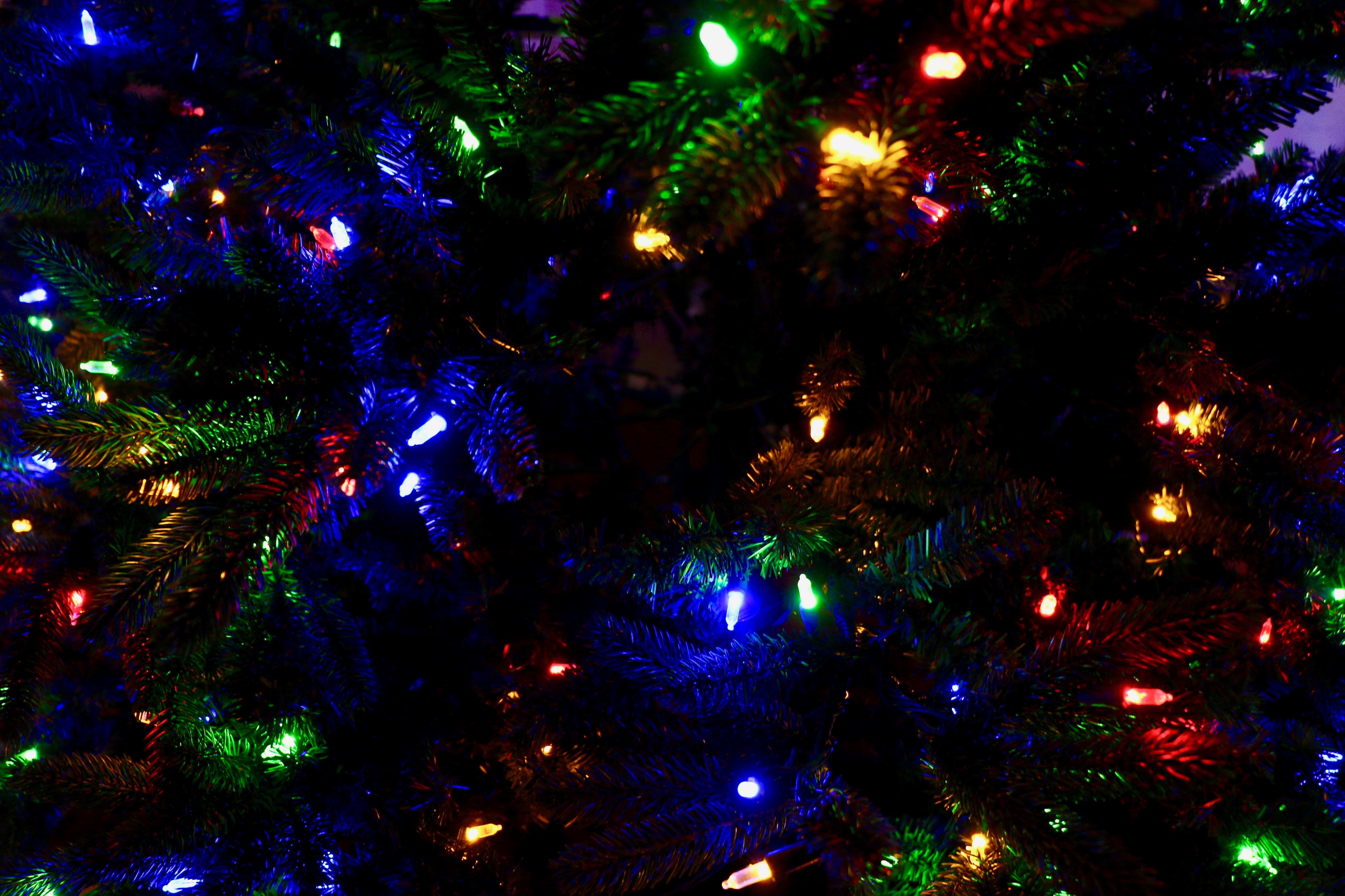 Обои Рождественский день, Рождественские огни, синий, свет, дерево, фото, заставка