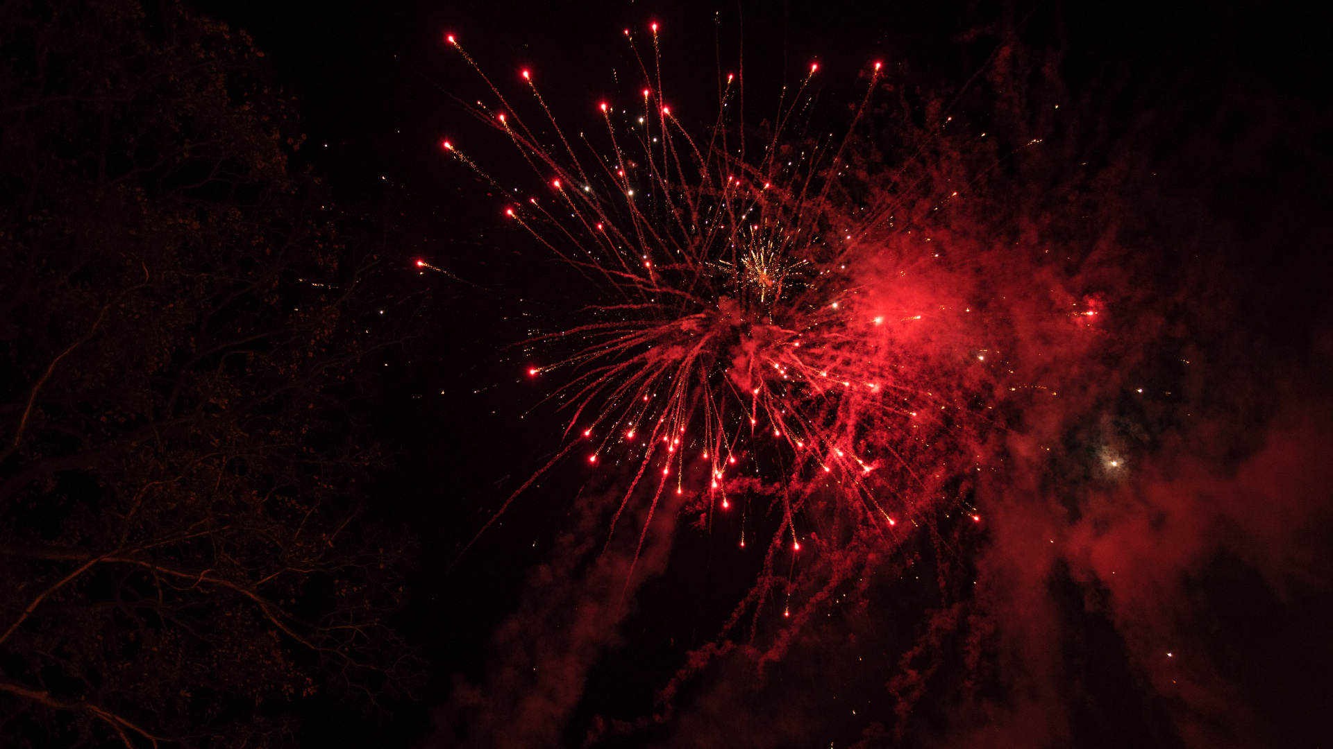 Обои 1920x1080 салют, фейерверк, красный цвет, свет, ночь, Full HD, HDTV, 1080p 16:9 картинка
