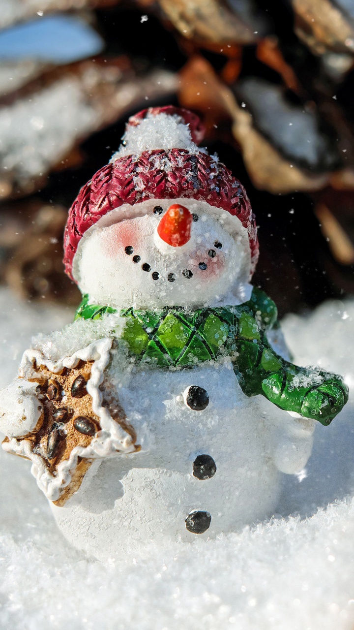 Обои Снеговик, Рождественский день, зима, снег, замораживание для HD Samsung Galaxy S3/J3/J4/J5, Meizu M5, Sony Xperia L1/L2, заставка, 720x1280 картинка