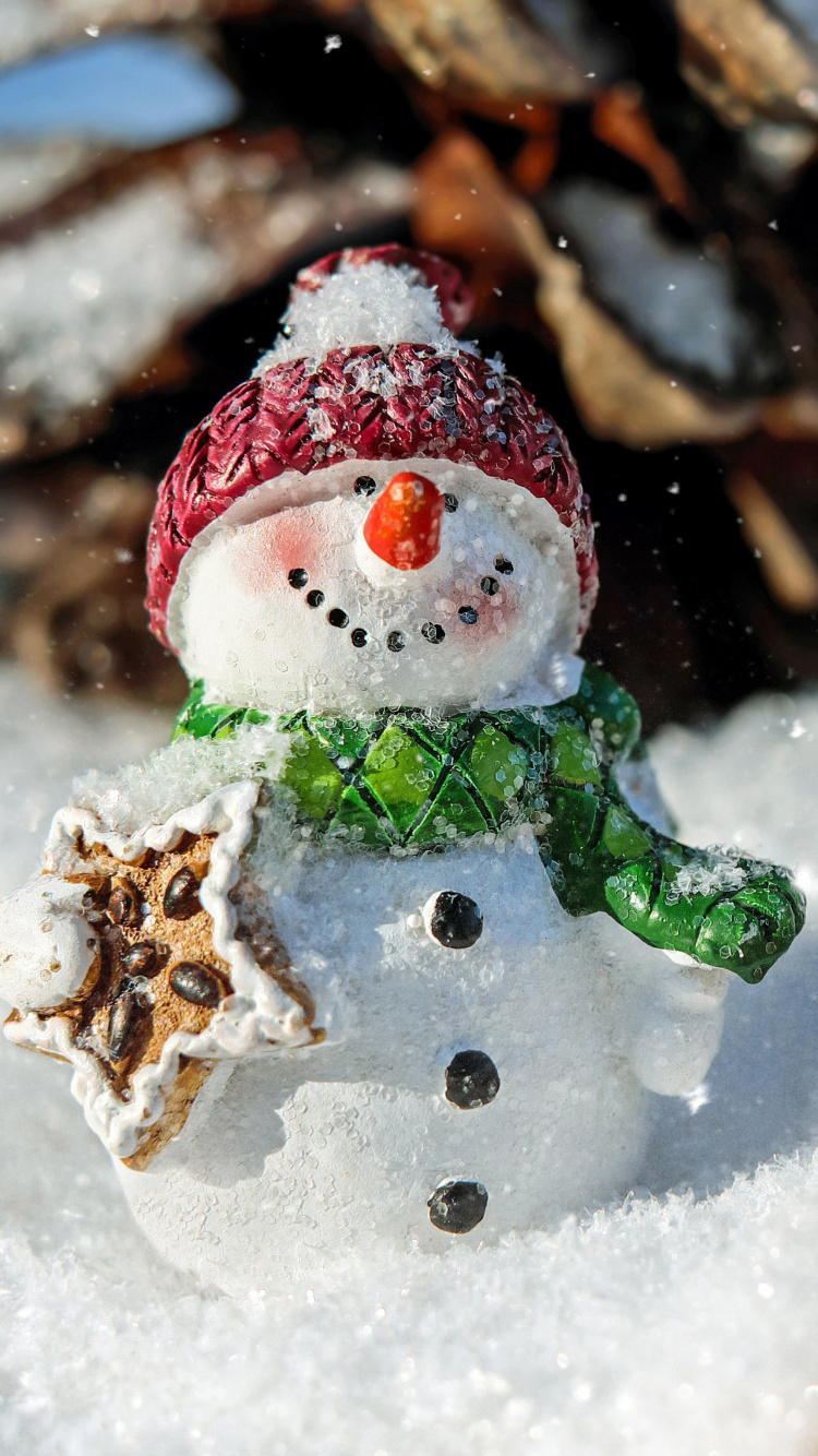 Обои Снеговик, Рождественский день, зима, снег, замораживание для iPhone 6, 6S, 7, 8, заставка, 750x1334 картинка