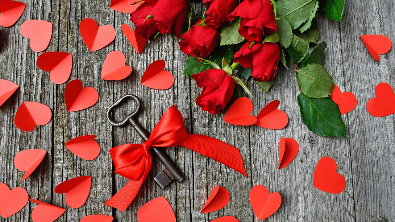 Обои 1280x720 сердце, красный цвет, лист, лепесток, цветок, HD, HDV, 720p, 16:9 картинка
