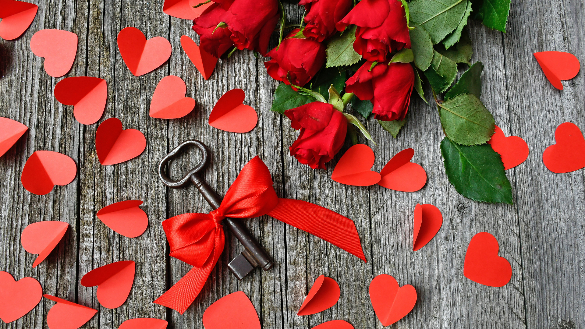Обои 1920x1080 сердце, красный цвет, лист, лепесток, цветок, Full HD, HDTV, 1080p 16:9 картинка