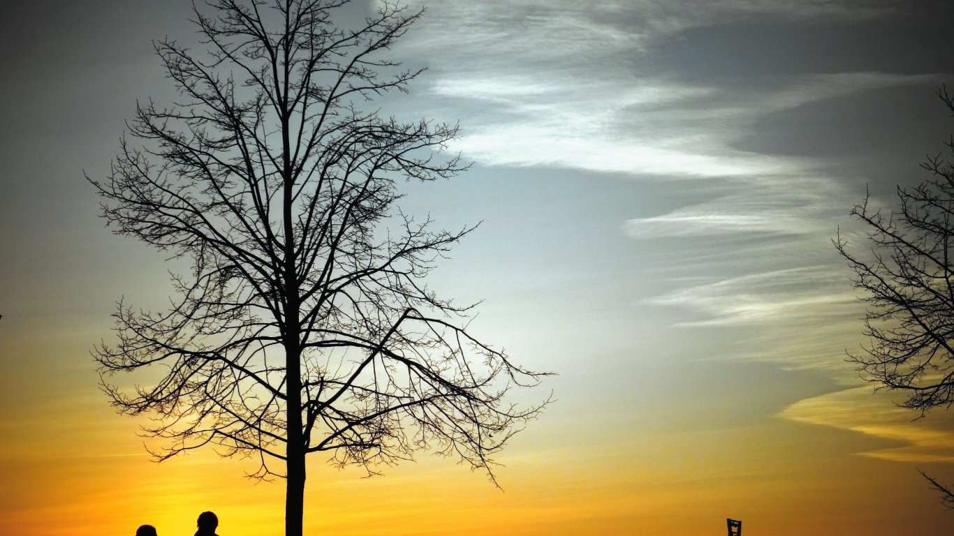 Обои 1366x768 дерево, небо, природный ландшафт, брак, вечер, HD ready картинка
