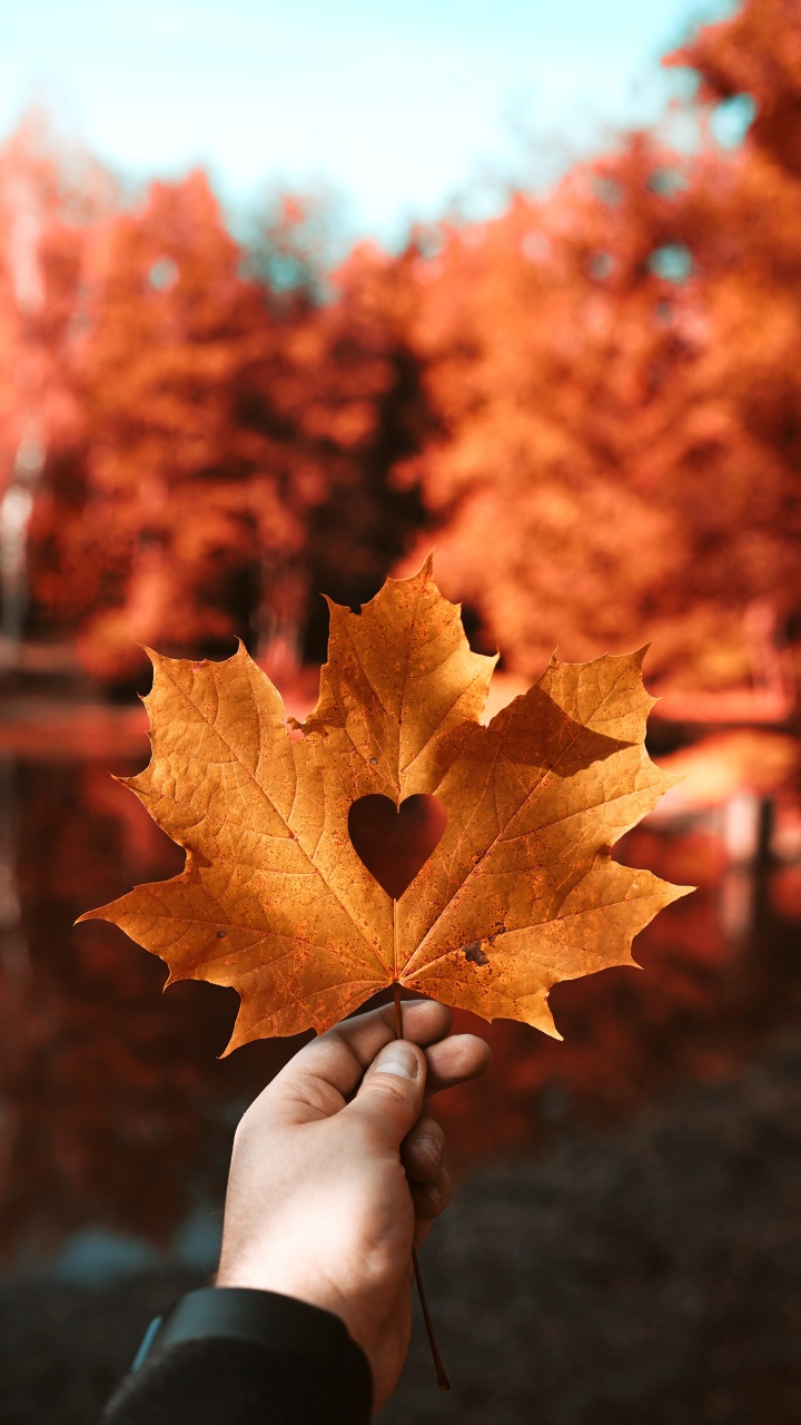 Обои осень, сердце, Рука сердце, лист, кленовый лист для HD Samsung Galaxy S3/J3/J4/J5, Meizu M5, Sony Xperia L1/L2, заставка, 720x1280 картинка