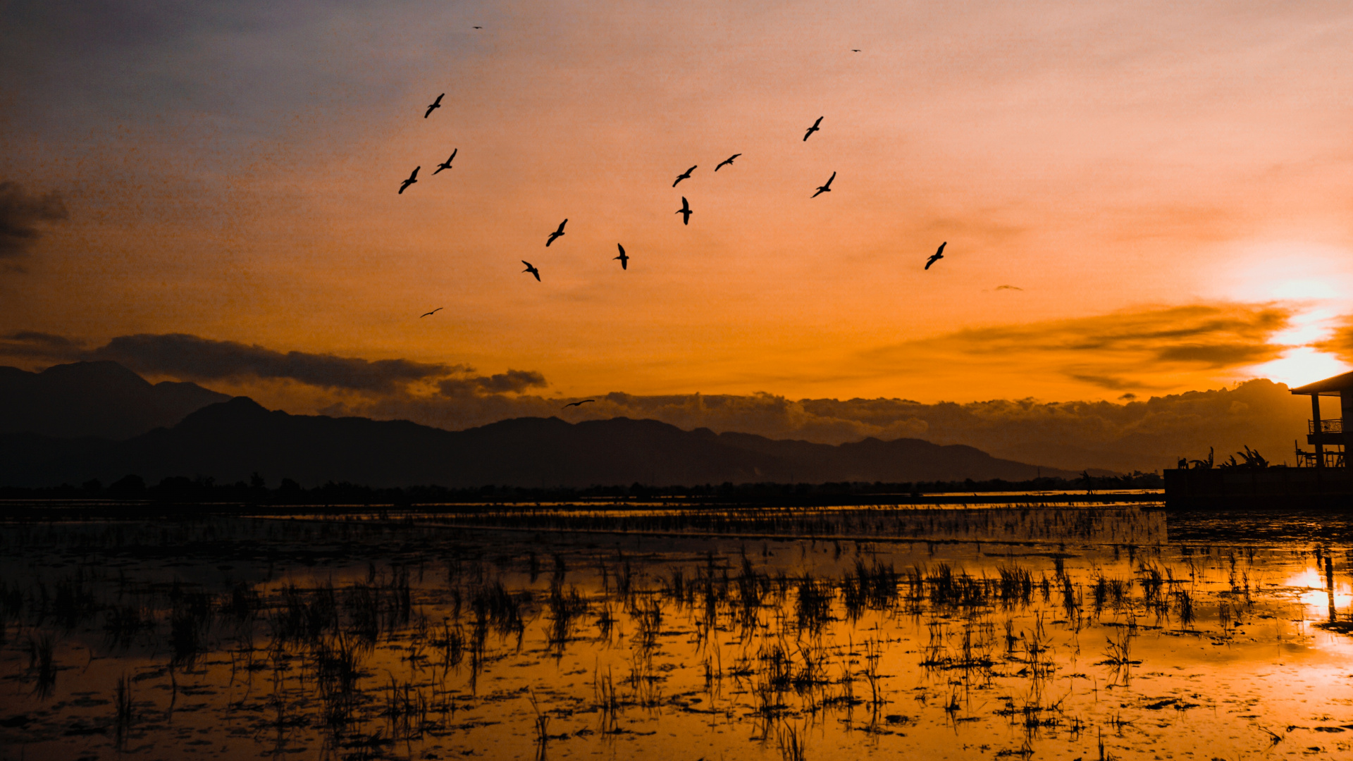 Обои 1920x1080 вода, облако, горизонт, закат, отражение, Full HD, HDTV, 1080p 16:9 картинка