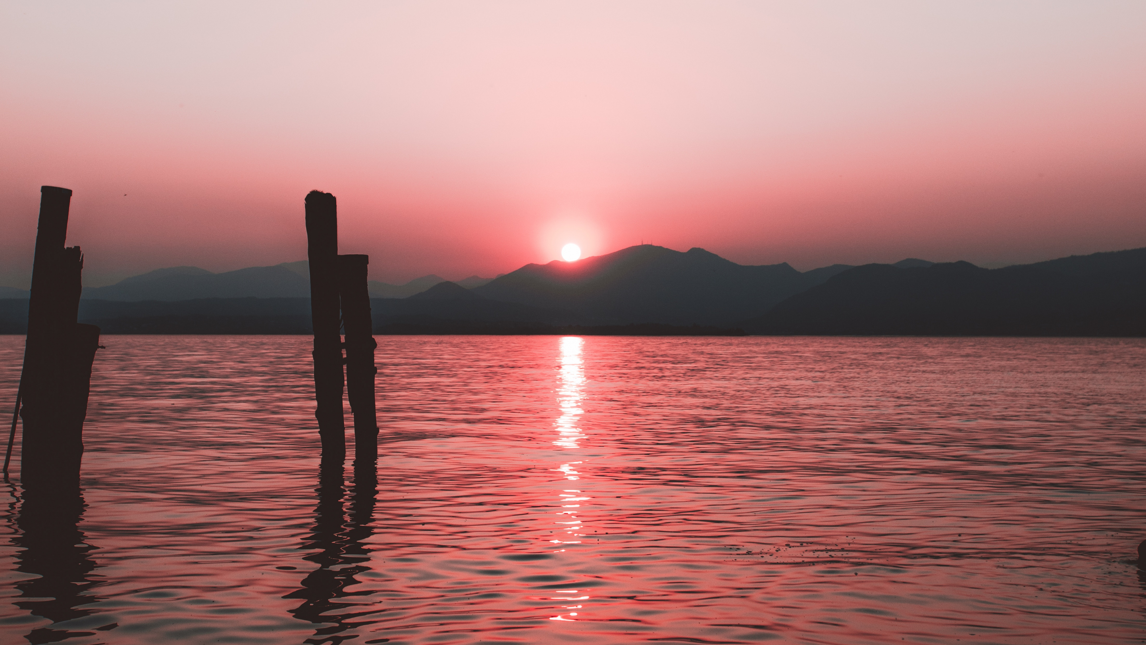 Обои 3840x2160 закат, горизонт, восход солнца, водоем, послесвечение, 4K Ultra HD картинка