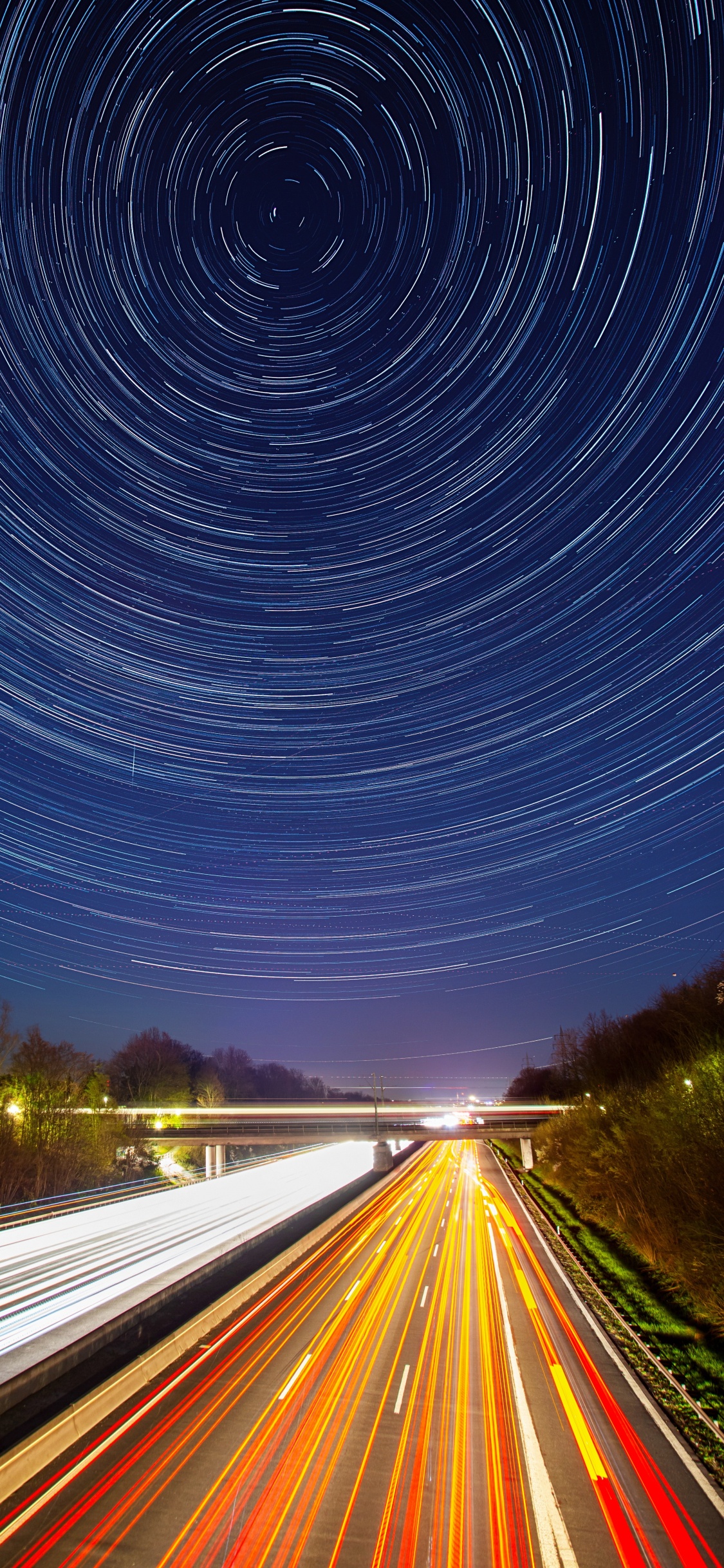 Обои природа, ночь, синий, дорога, свет для iPhone X / XS, заставка, 1125x2436 картинка