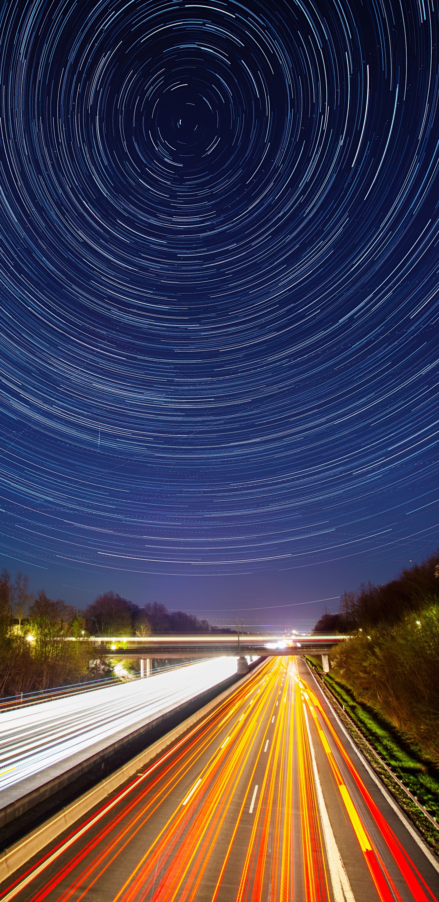 Обои природа, ночь, синий, дорога, свет для Samsung Galaxy S8/S8+/S9/S9+/Note 8/Note 9 QHD, заставка, 1440x2960 картинка