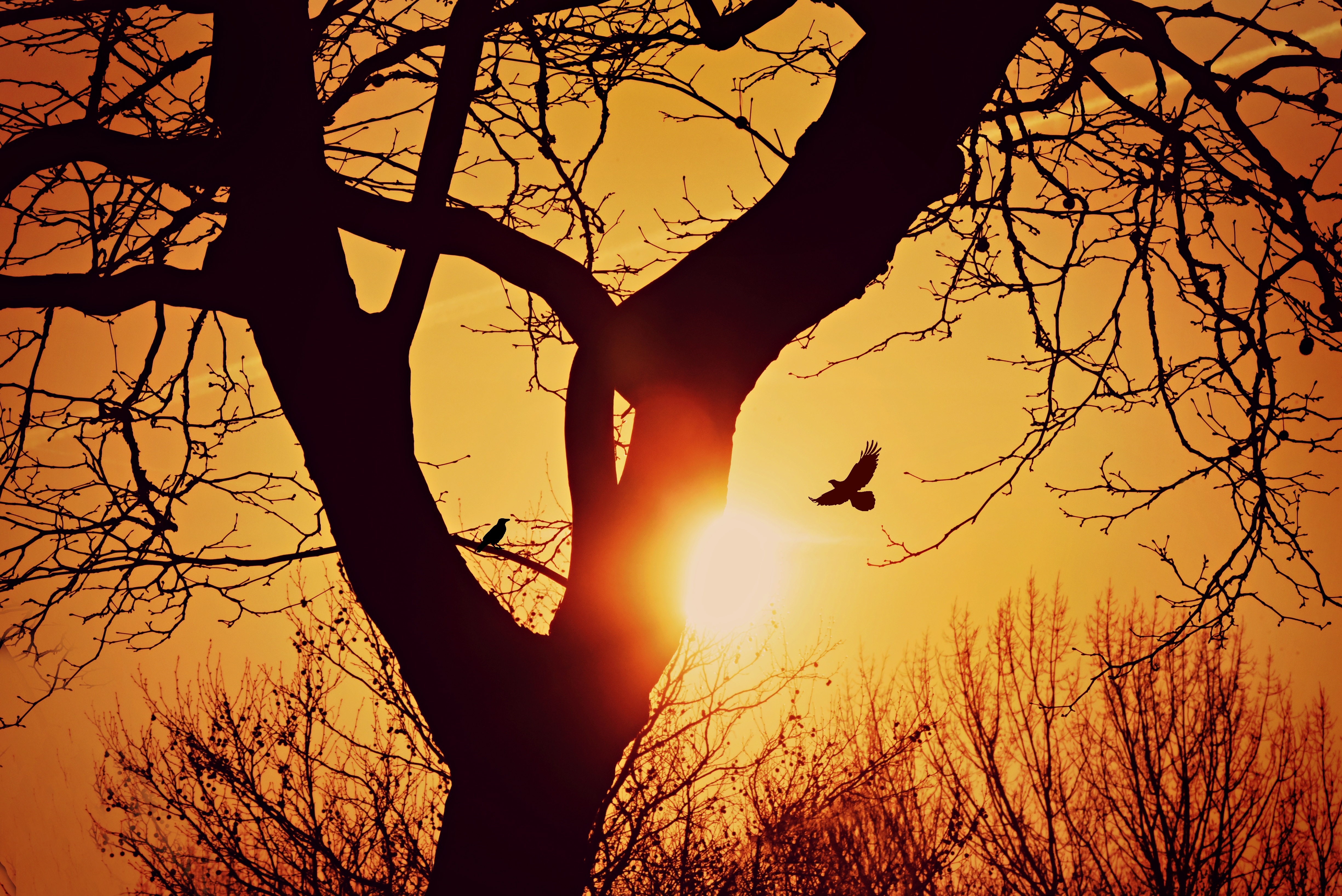 Обои закат, силуэт, ветвь, дерево, природа, фото, заставка