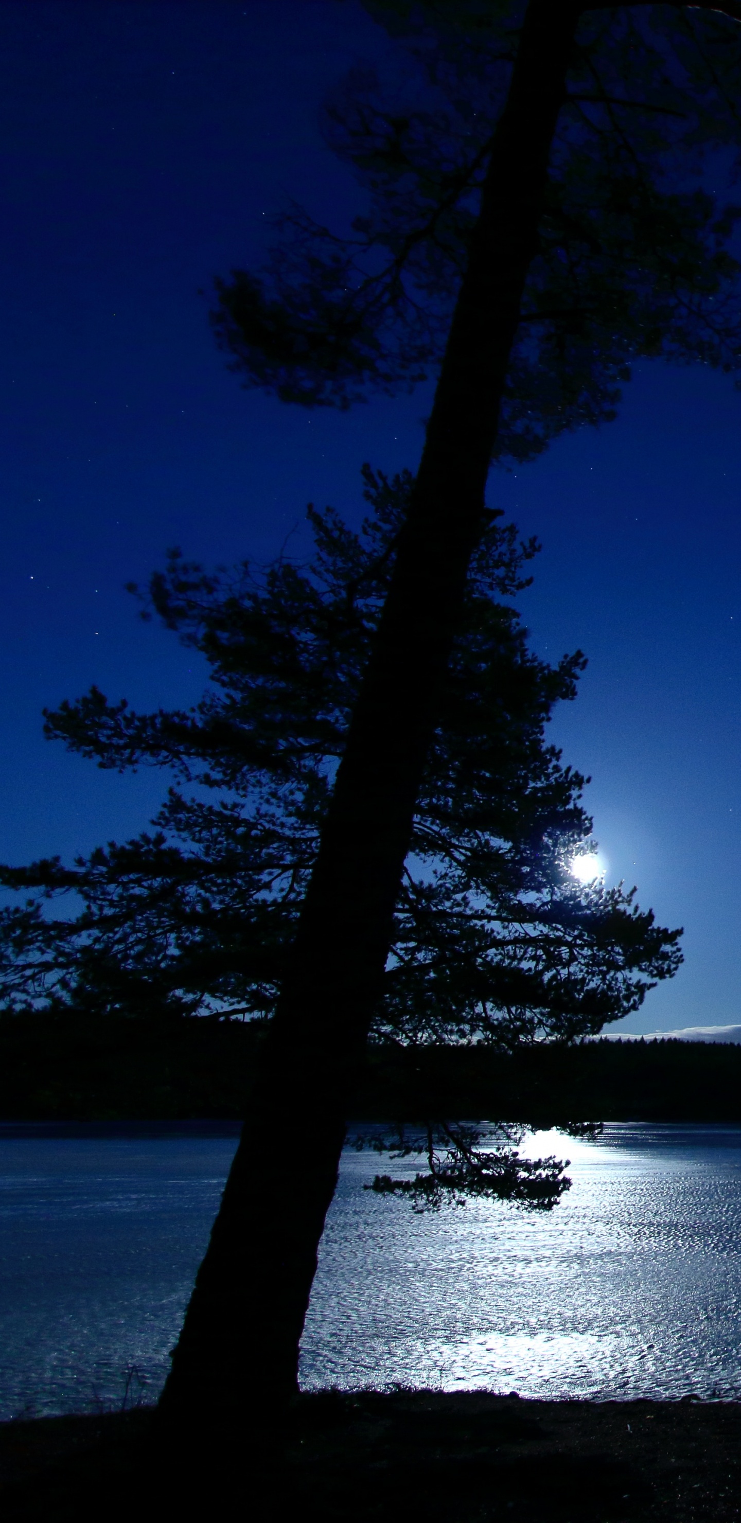 Обои ночь, вода, природа, синий, дерево для Samsung Galaxy S8/S8+/S9/S9+/Note 8/Note 9 QHD, заставка, 1440x2960 картинка
