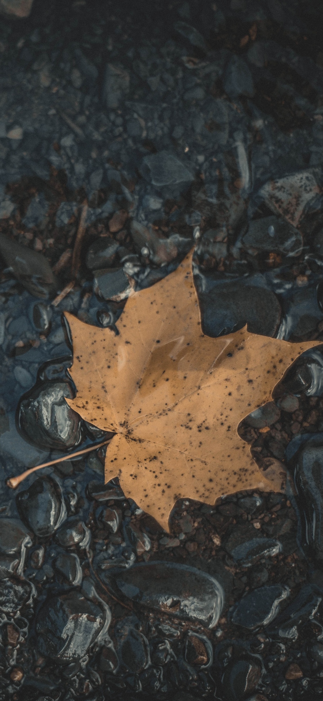 Обои лист, кленовый лист, черный, вода, коричневый цвет для iPhone X / XS, заставка, 1125x2436 картинка