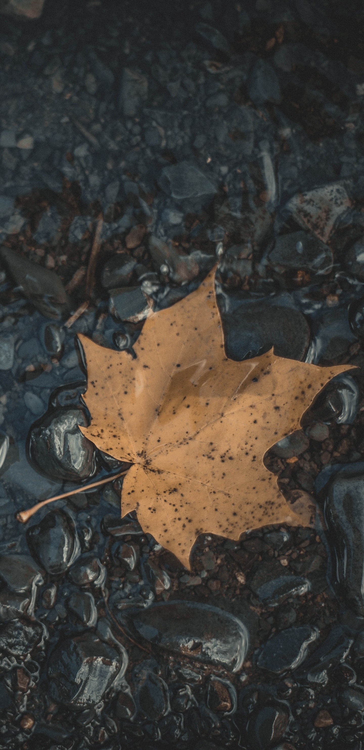 Обои лист, кленовый лист, черный, вода, коричневый цвет для Samsung Galaxy S8/S8+/S9/S9+/Note 8/Note 9 QHD, заставка, 1440x2960 картинка