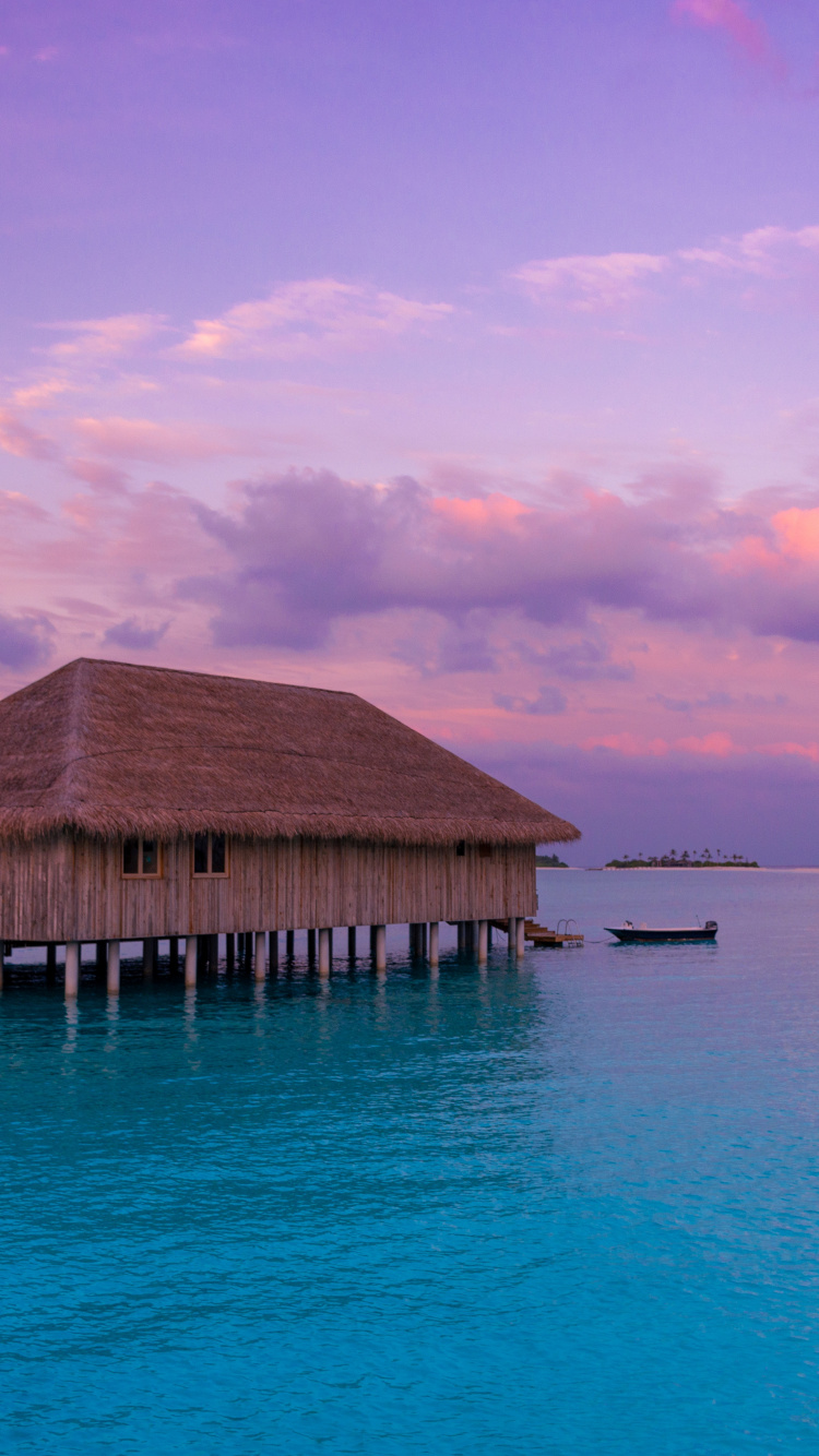 Обои бунгало, море, океан, горизонт, тропическая зона для iPhone 6, 6S, 7, 8, заставка, 750x1334 картинка
