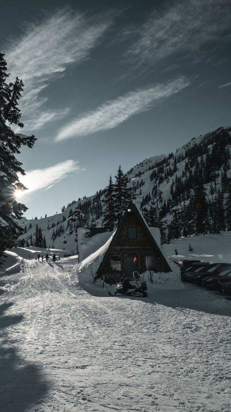 Обои снег, зима, дерево, гора, горный хребет для iPhone 6, 6S, 7, 8, заставка, 750x1334 картинка