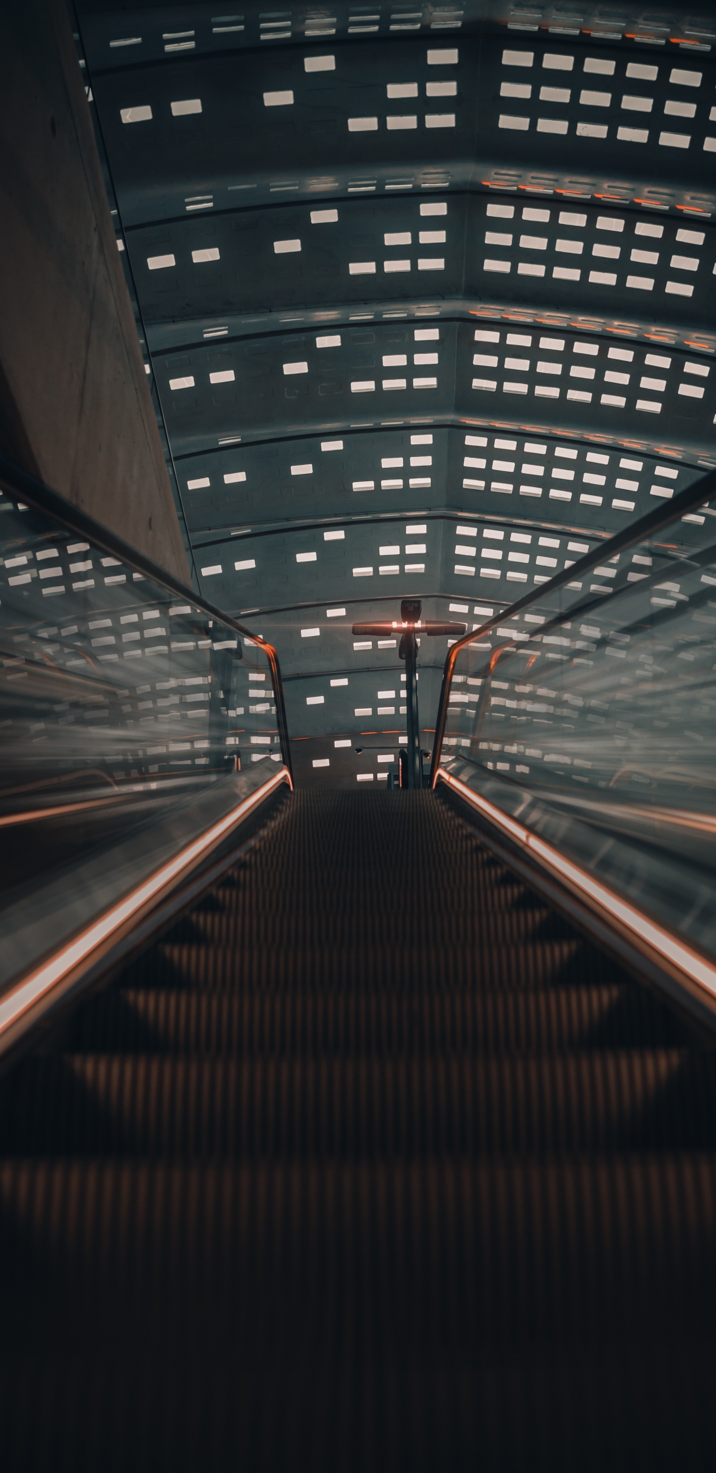 Обои эскалатор, свет, архитектура, линия, симметрия для Samsung Galaxy S8/S8+/S9/S9+/Note 8/Note 9 QHD, заставка, 1440x2960 картинка