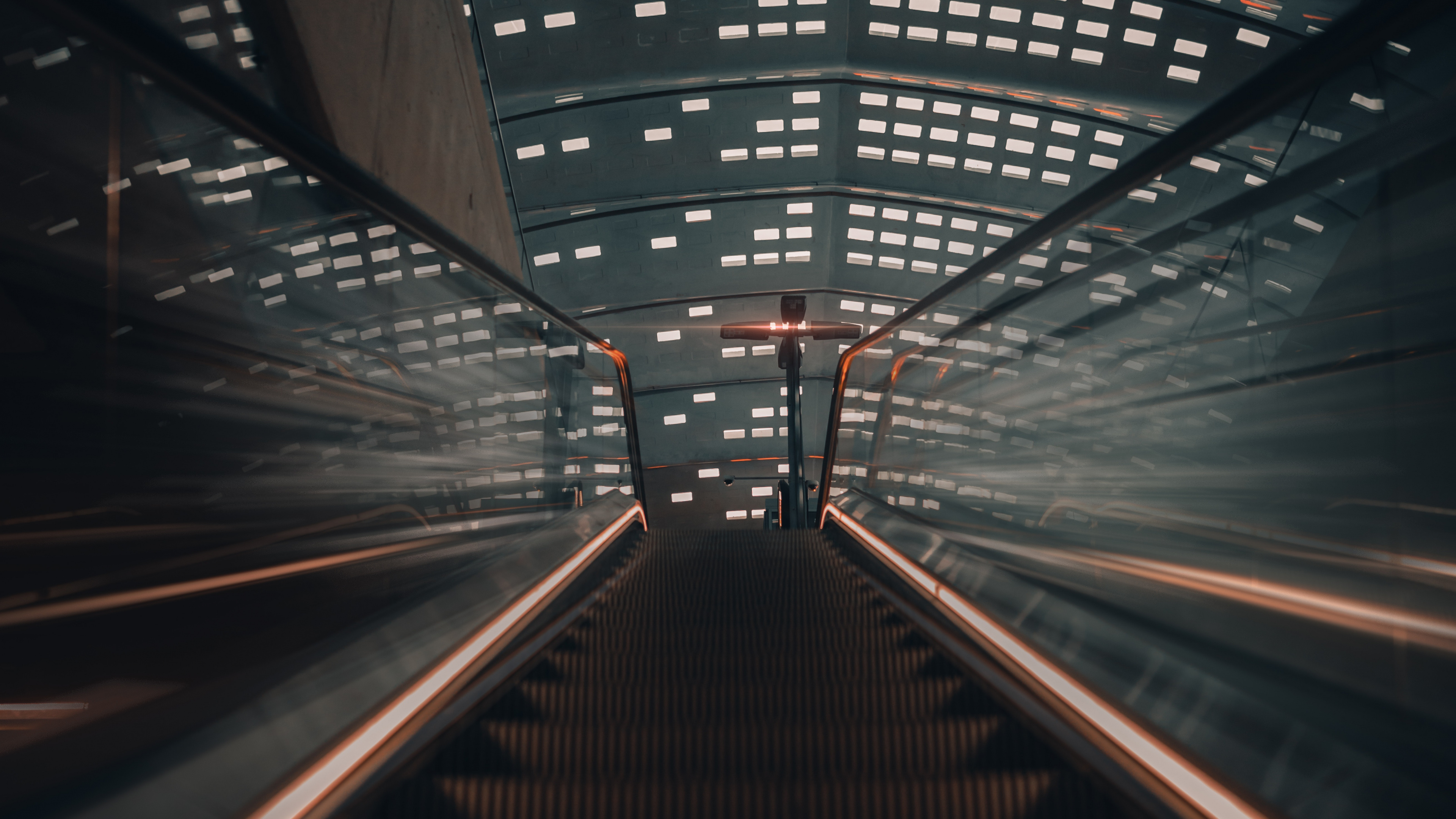 Обои 3840x2160 эскалатор, свет, архитектура, линия, симметрия, 4K Ultra HD картинка