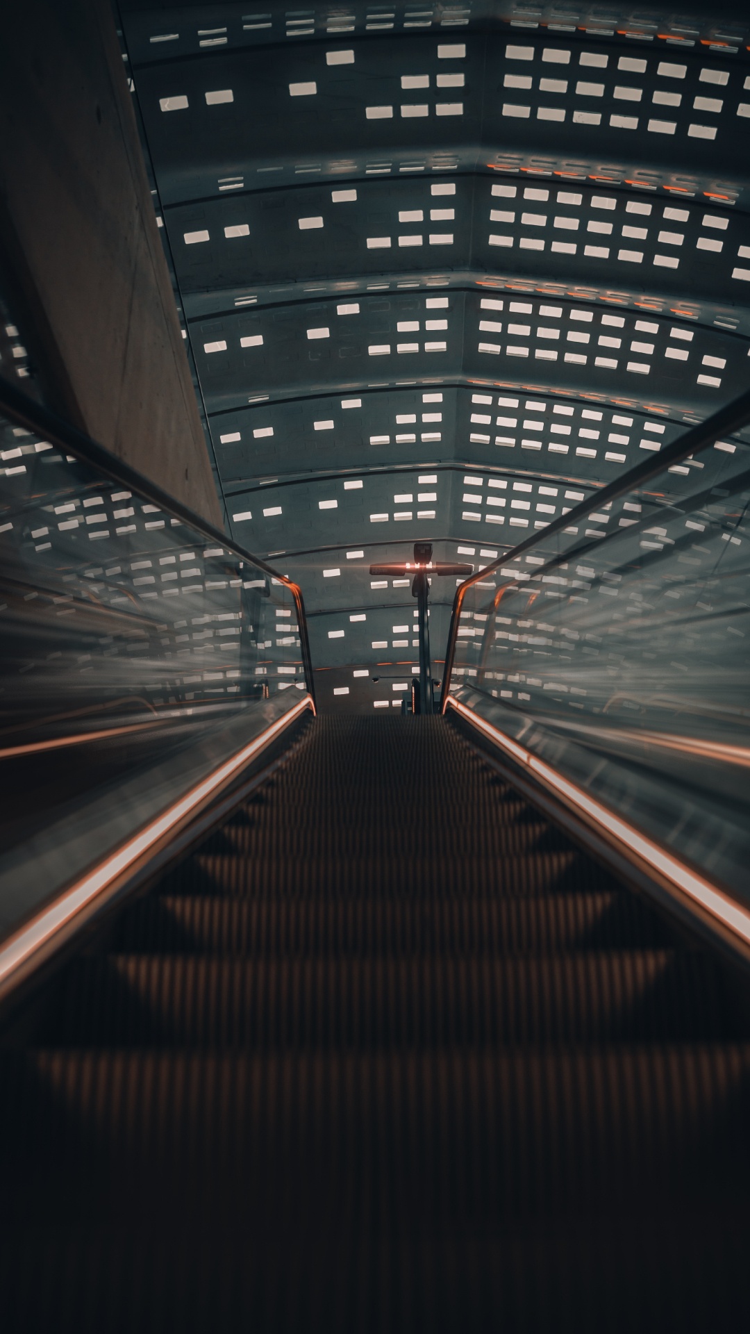 Обои эскалатор, свет, архитектура, линия, симметрия для iPhone 6S+/7+/8+, заставка, 1080x1920 картинка