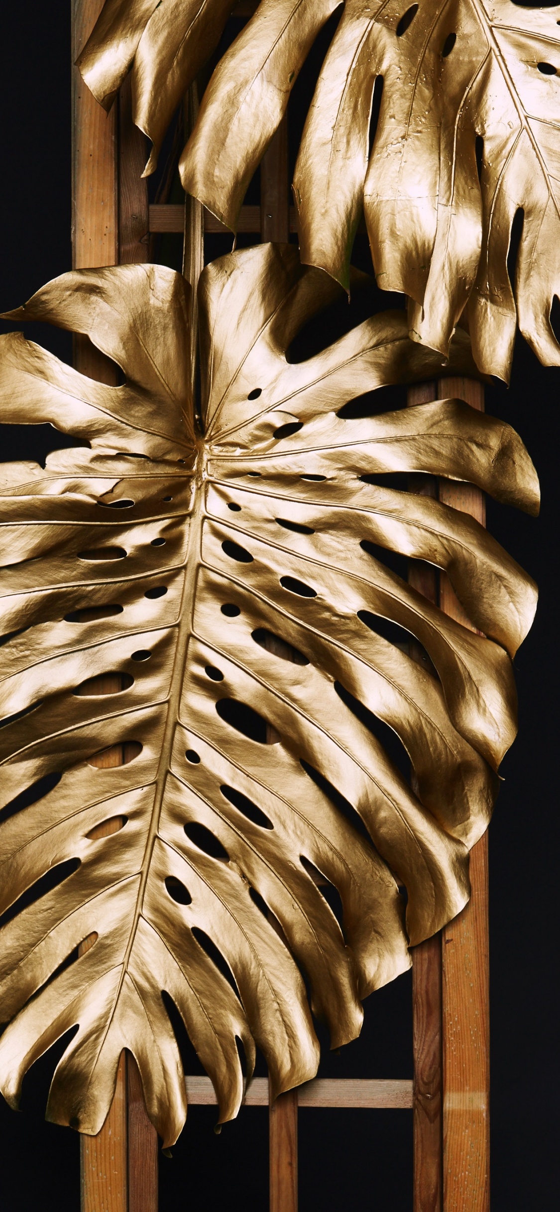 Обои золото монстера листья, Швейцарский сыр завод, золото, сусальное золото, лист для iPhone X / XS, заставка, 1125x2436 картинка