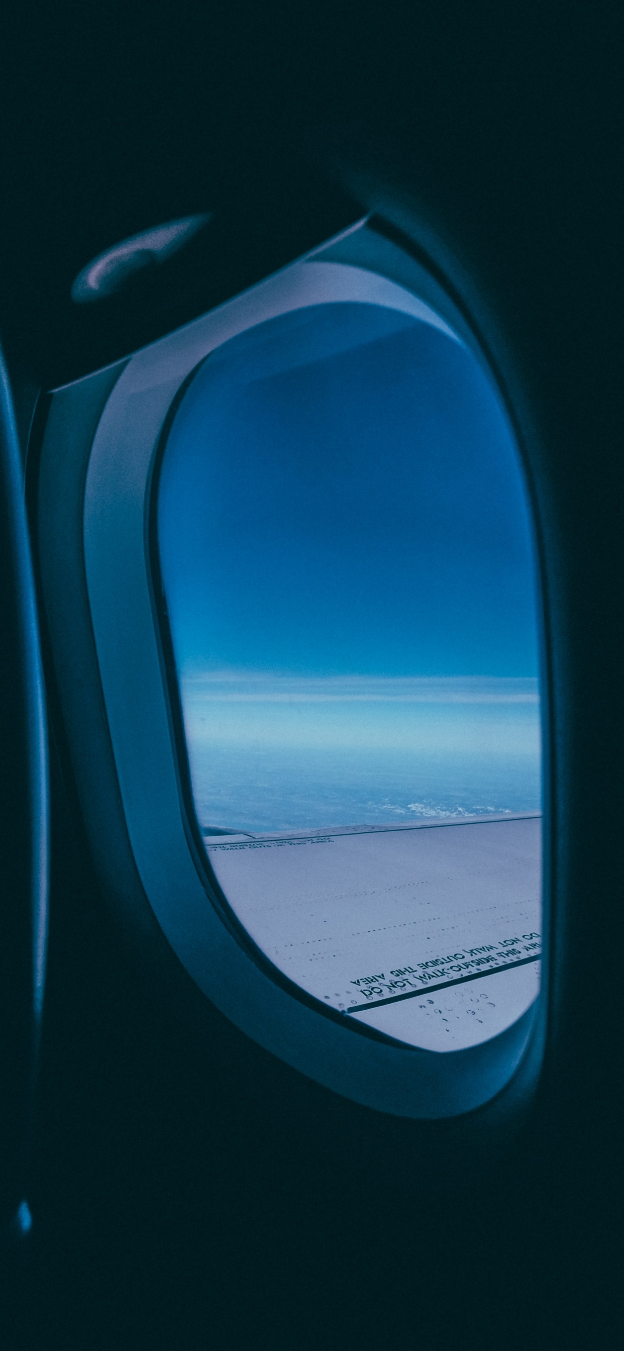 Обои самолет, полет, окно, синий, Аква для iPhone XS Max, заставка, 1242x2688 картинка
