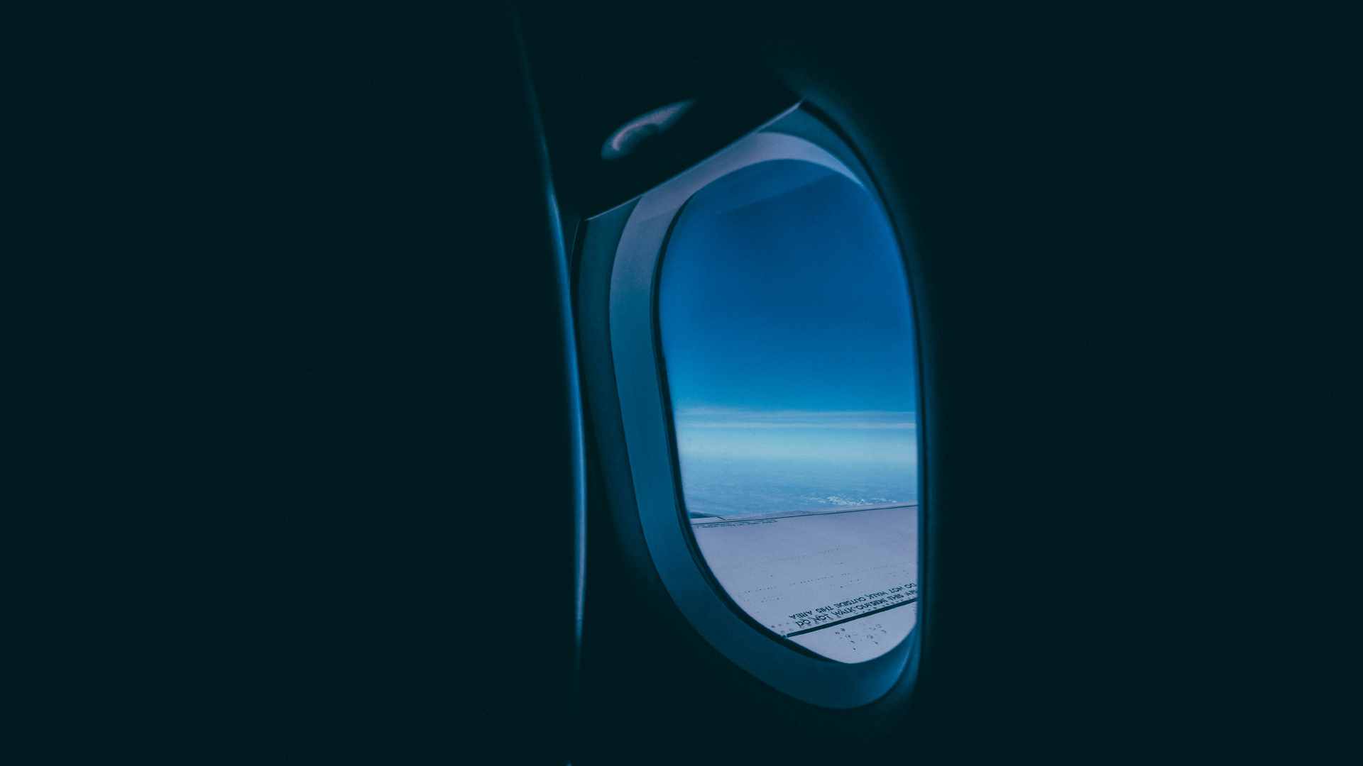 Обои 1920x1080 самолет, полет, окно, синий, Аква, Full HD, HDTV, 1080p 16:9 картинка