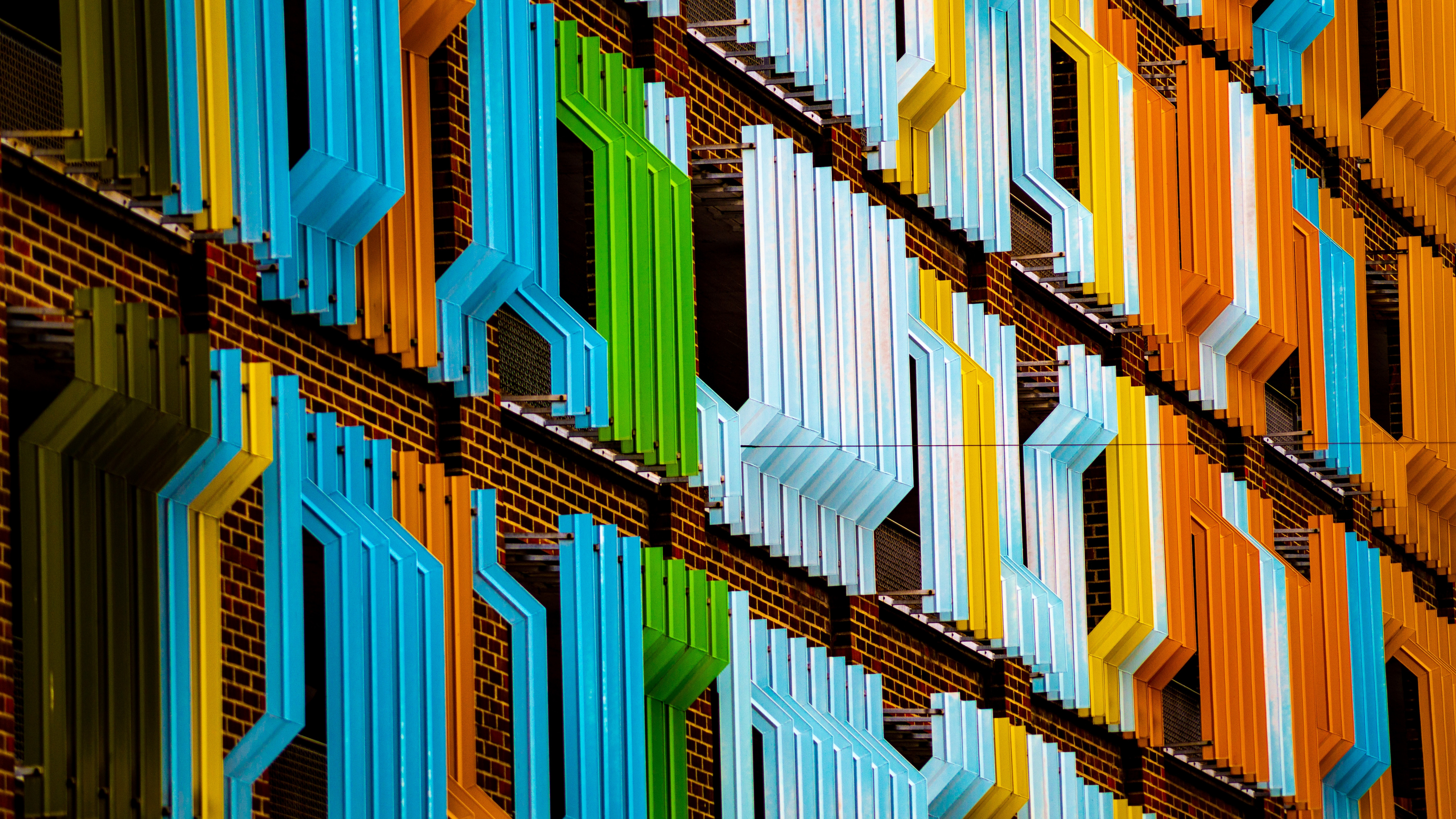 Обои 3840x2160 фасад, архитектура, здание, синий, линия, 4K Ultra HD картинка