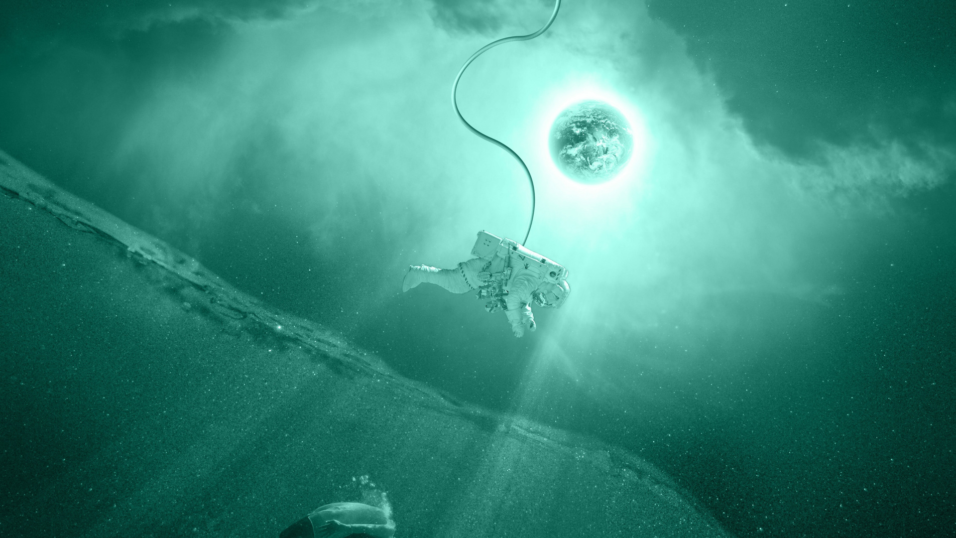 Обои 1920x1080 астронавт, вода, подземные воды, пространство, музыка, Full HD, HDTV, 1080p 16:9 картинка