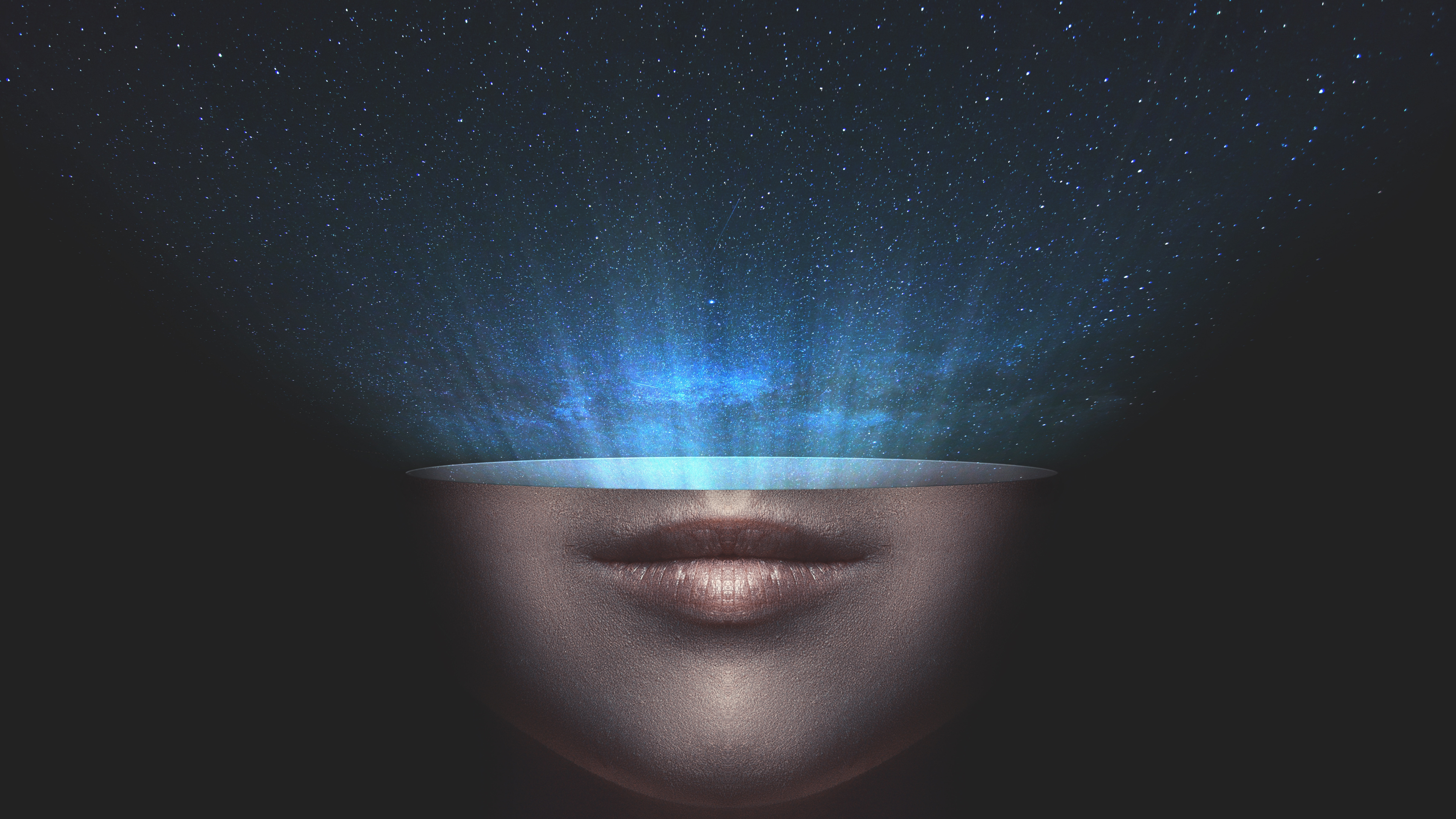 Обои 3840x2160 Вселенная, космос, лицо, синий, голова, 4K Ultra HD картинка