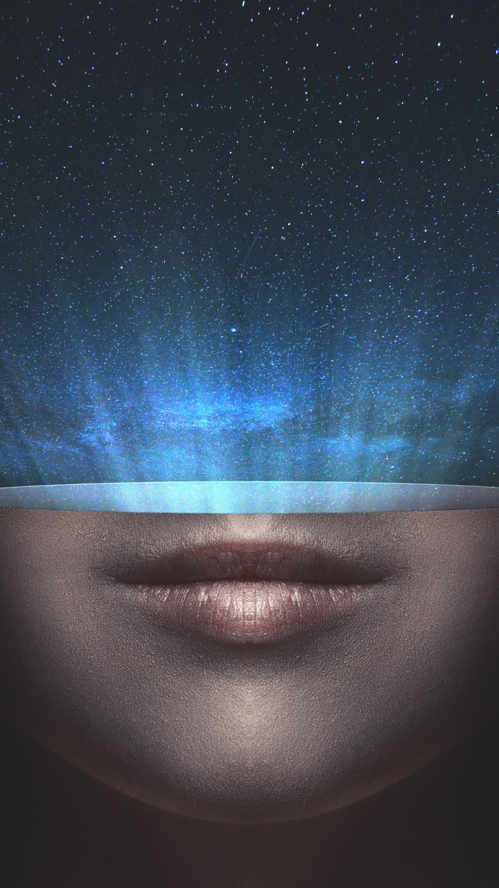 Обои Вселенная, космос, лицо, синий, голова для HD Samsung Galaxy S3/J3/J4/J5, Meizu M5, Sony Xperia L1/L2, заставка, 720x1280 картинка