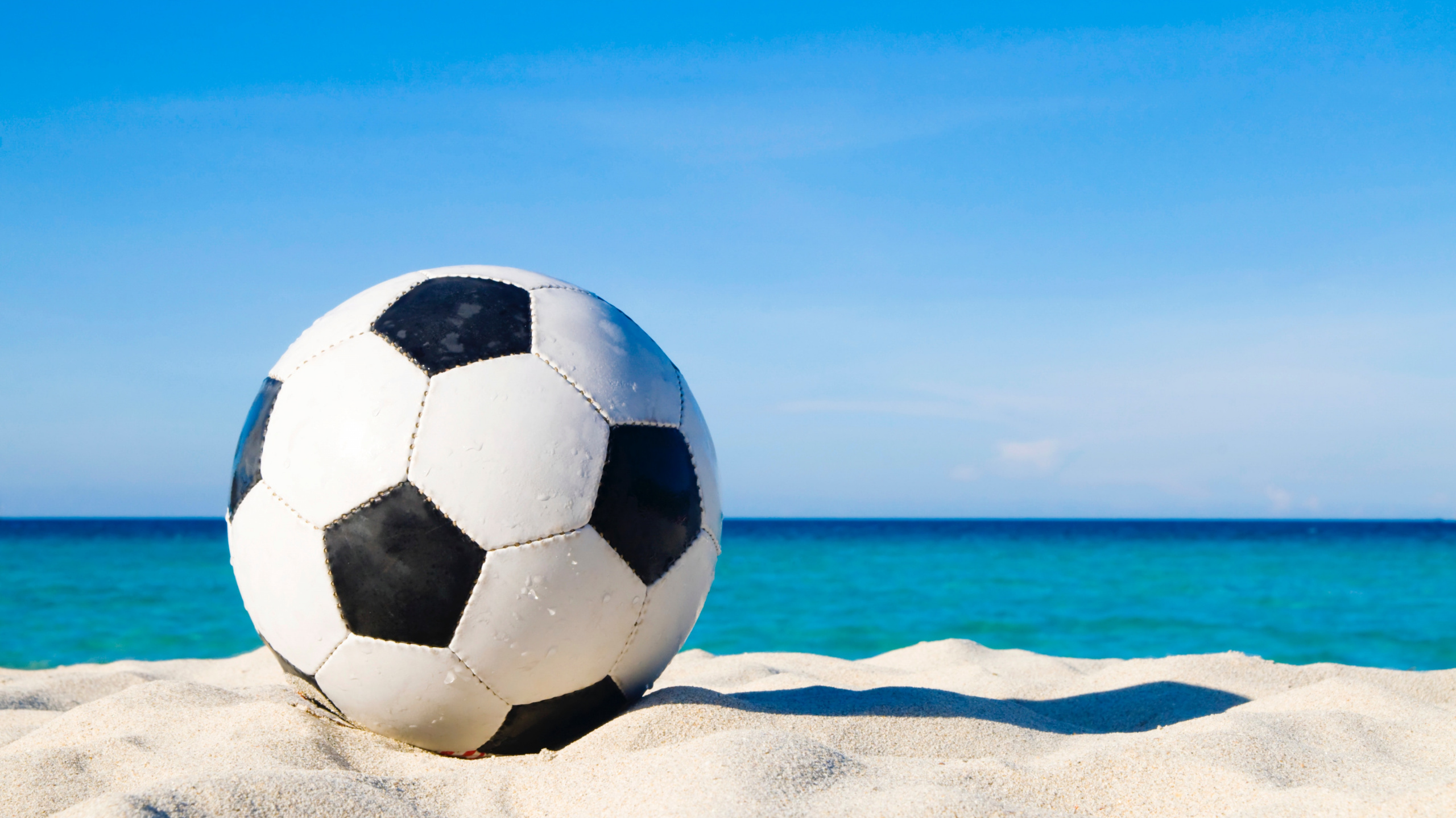 Обои 2560x1440 пляжный футбол, пляж, мяч, футбол, футбольный мяч, WQHD, QHD, 16:9 картинка