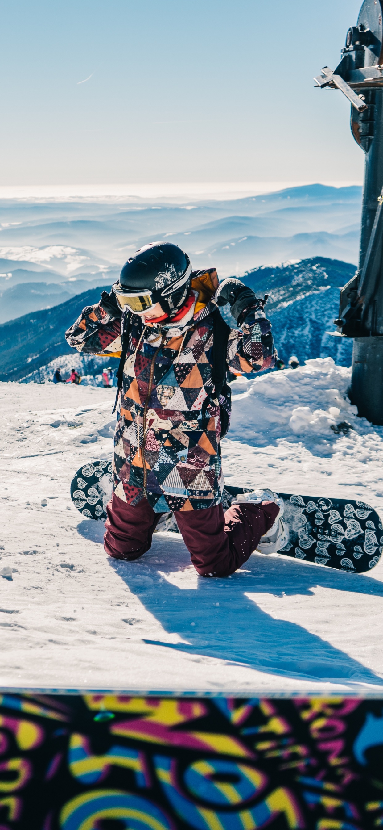 Обои сноуборд, снег, зима, гора, обувь для iPhone XS Max, заставка, 1242x2688 картинка