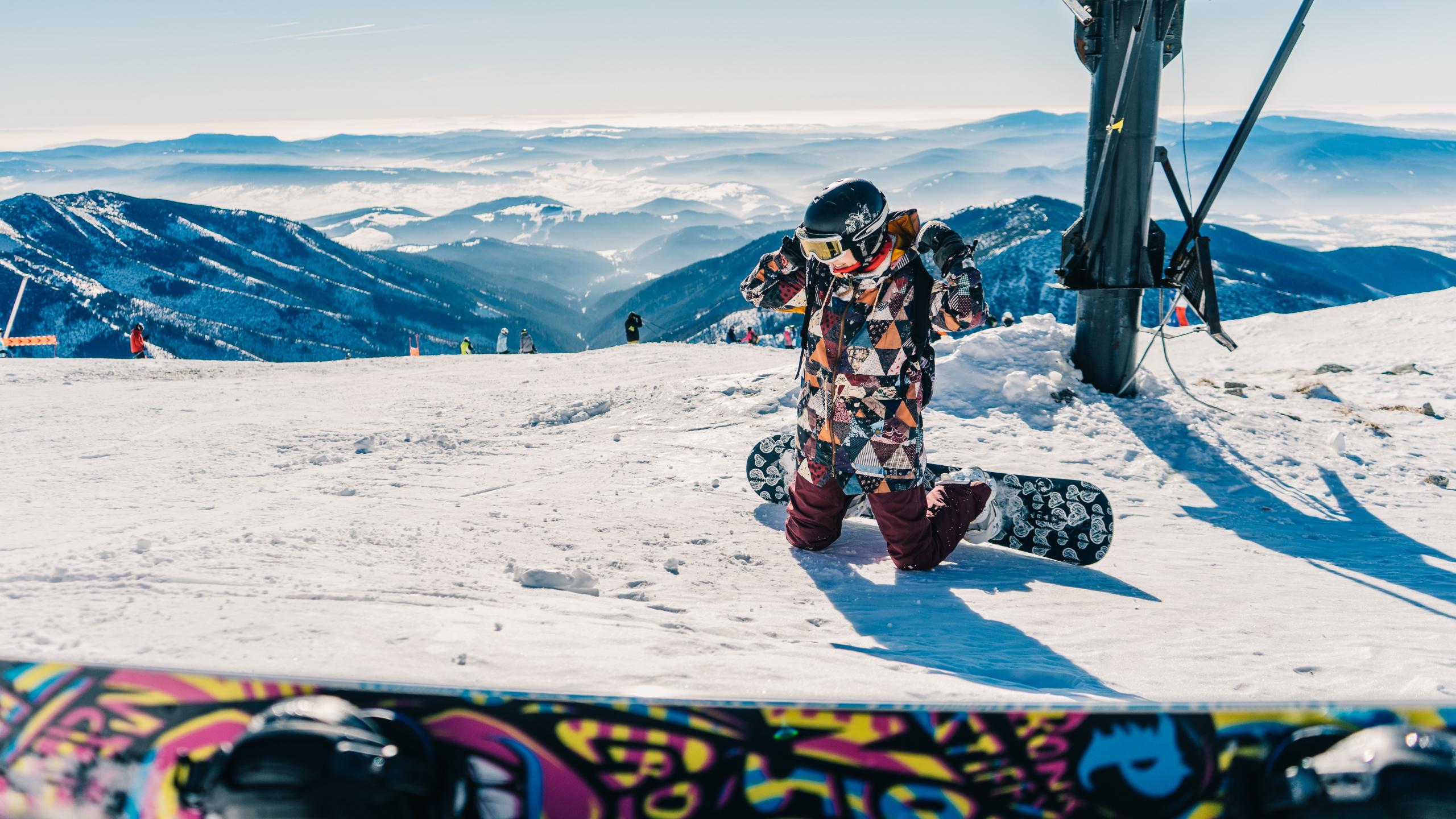 Обои 2560x1440 сноуборд, снег, зима, гора, обувь, WQHD, QHD, 16:9 картинка