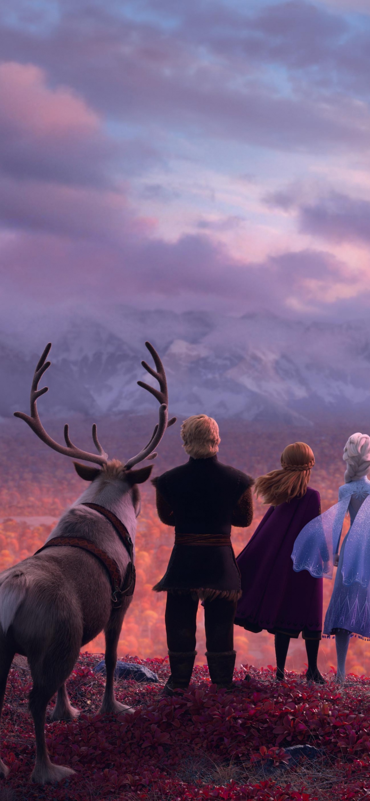 Обои Замороженные 2, Эльза, Анна, кристофф, Олаф для iPhone XS Max, заставка, 1242x2688 картинка
