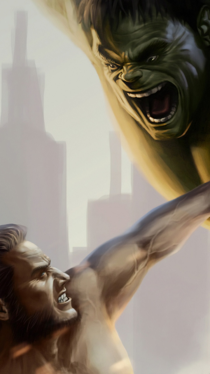 Обои Росомаха, Халк, комиксы Марвел, супергерой, вселенная Marvel для HD Samsung Galaxy S3/J3/J4/J5, Meizu M5, Sony Xperia L1/L2, заставка, 720x1280 картинка