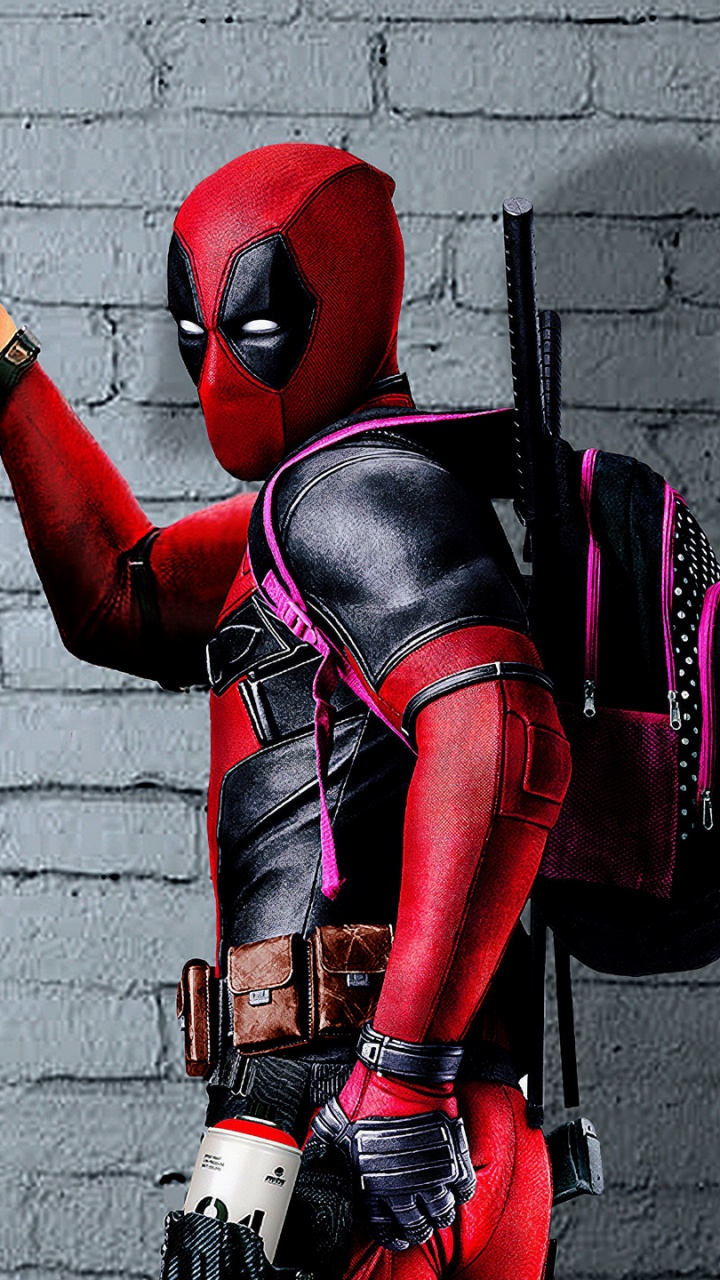 Обои арт, уличное искусство, граффити, дэдпул, красный цвет для HD Samsung Galaxy S3/J3/J4/J5, Meizu M5, Sony Xperia L1/L2, заставка, 720x1280 картинка