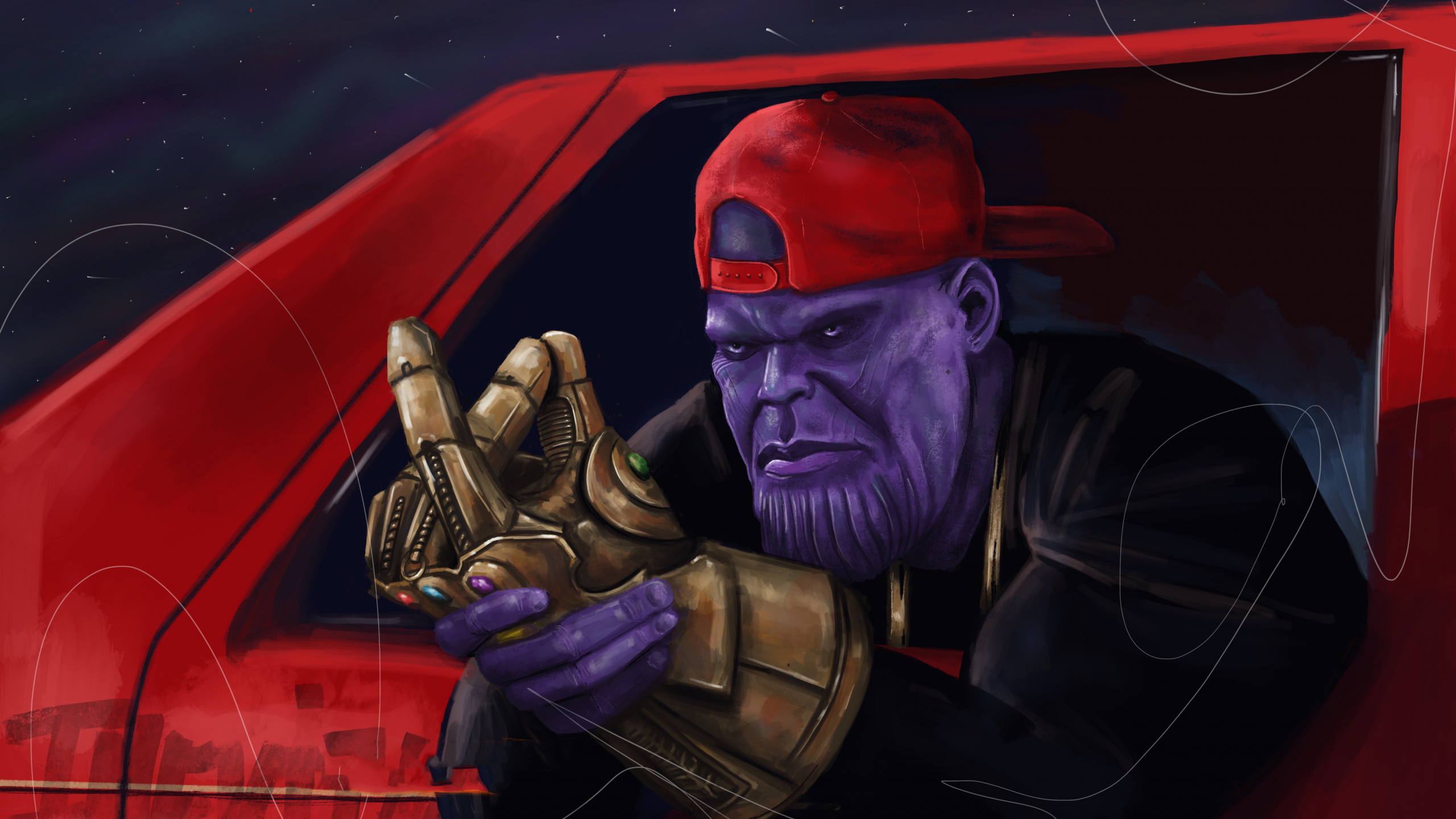 Обои 2560x1440 Танос, иллюстрация, арт, космос, артист, WQHD, QHD, 16:9 картинка