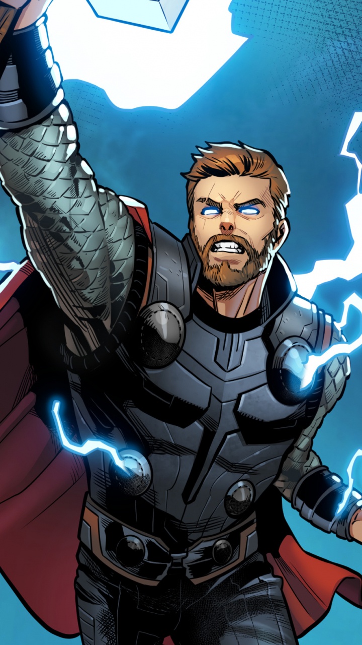 Обои ТОР, Танос, супергерой, marvel, комиксы для HD Samsung Galaxy S3/J3/J4/J5, Meizu M5, Sony Xperia L1/L2, заставка, 720x1280 картинка