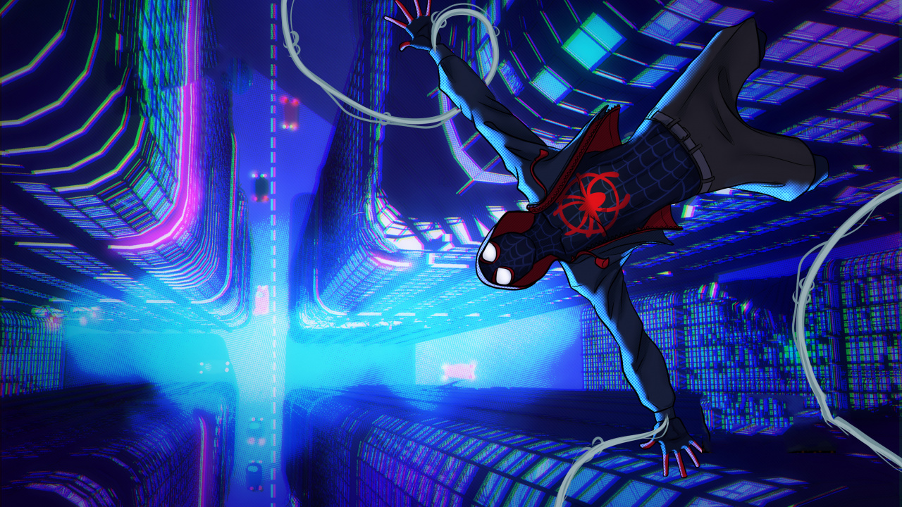 Обои 1280x720 человек-паук, Майлз Моралес, синий, свет, графический дизайн, HD, HDV, 720p, 16:9 картинка