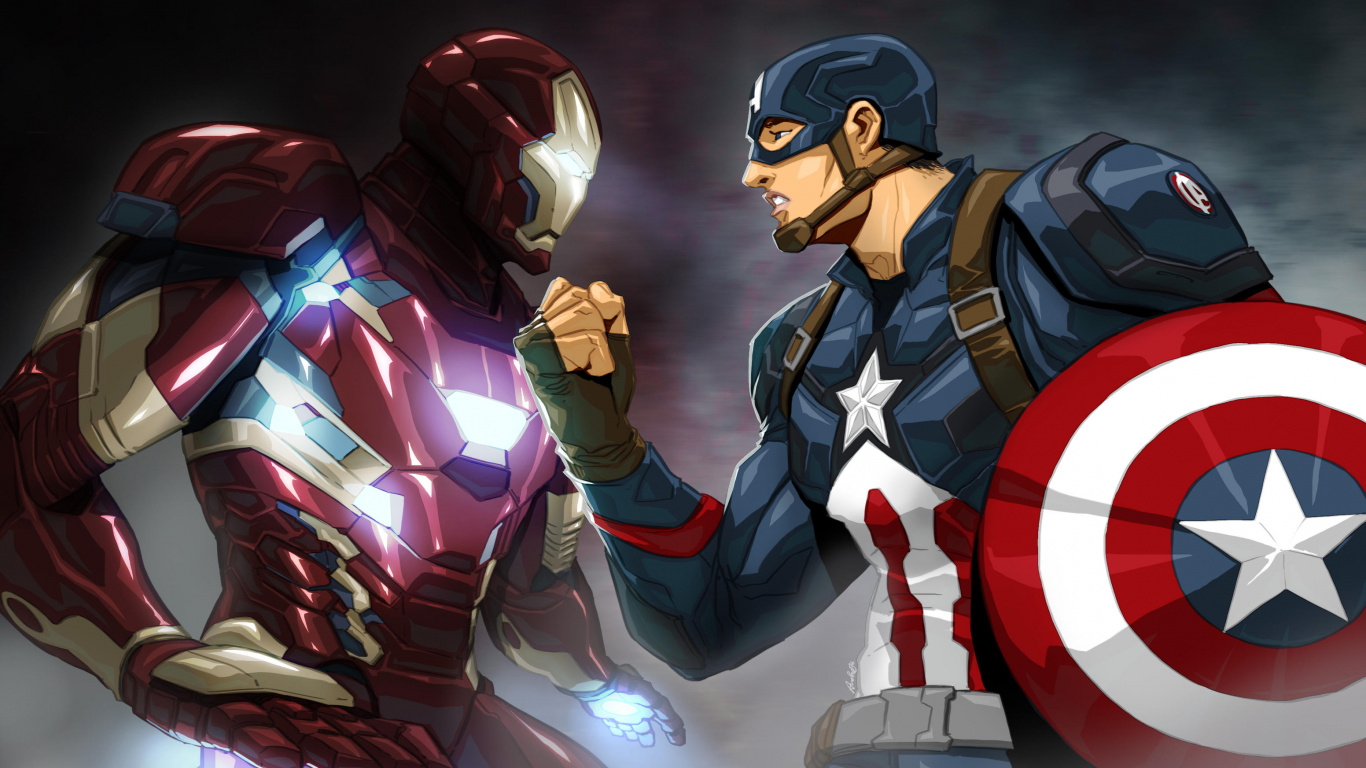 Обои 1366x768 Капитан Америка, Железный человек, цифровое искусство, супергерой, арт, HD ready картинка
