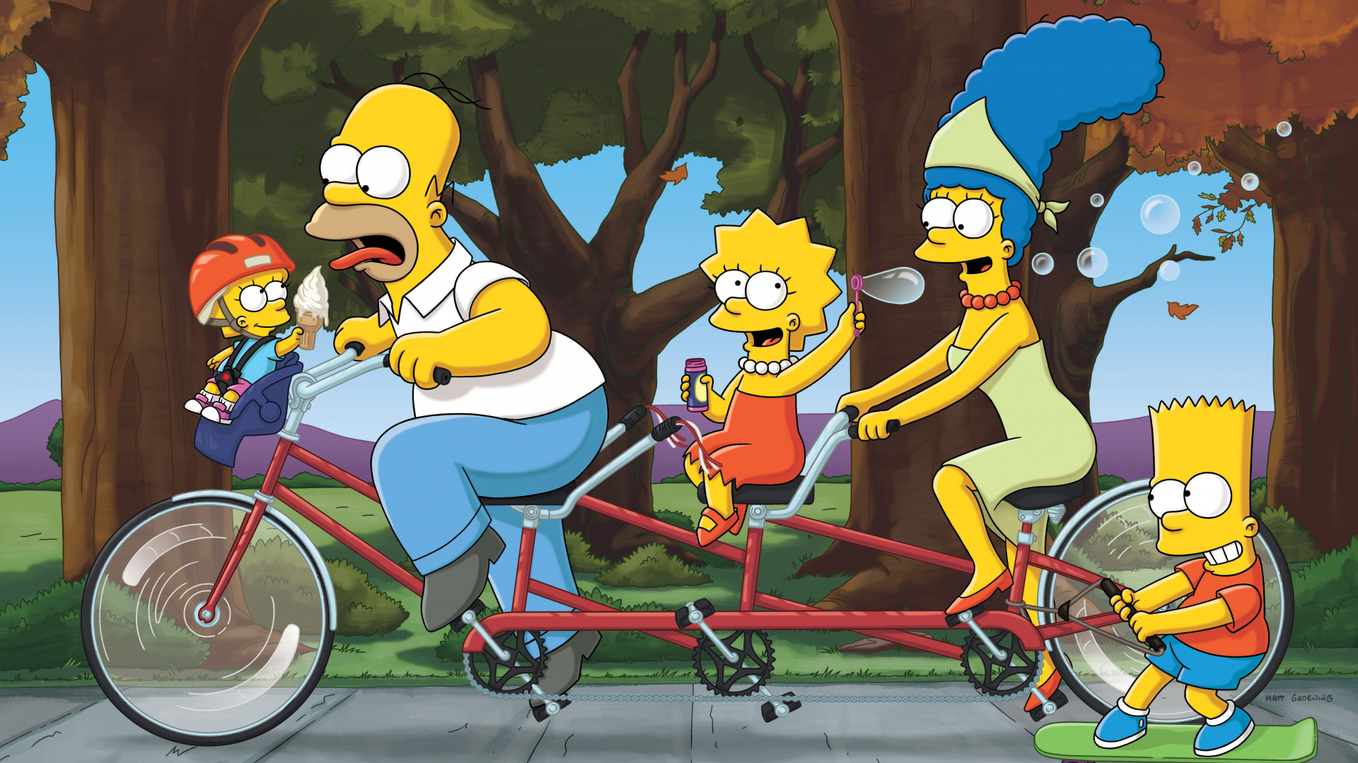 Обои 1920x1080 Гомер Симпсон, Лиза Симпсон, Мардж Симпсон, Барт Симпсон, семья симпсонов, Full HD, HDTV, 1080p 16:9 картинка