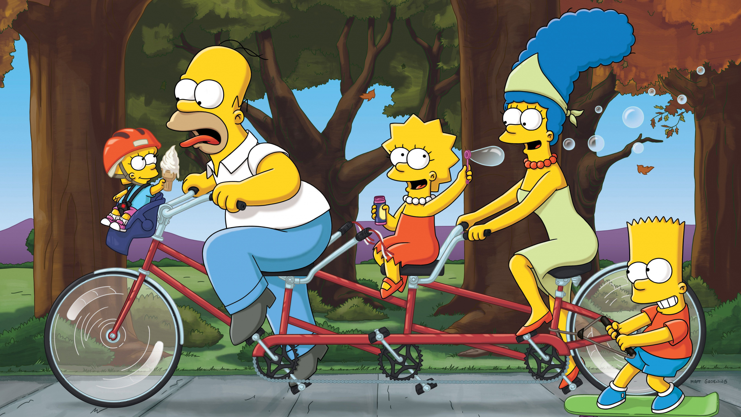 Обои 2560x1440 Гомер Симпсон, Лиза Симпсон, Мардж Симпсон, Барт Симпсон, семья симпсонов, WQHD, QHD, 16:9 картинка