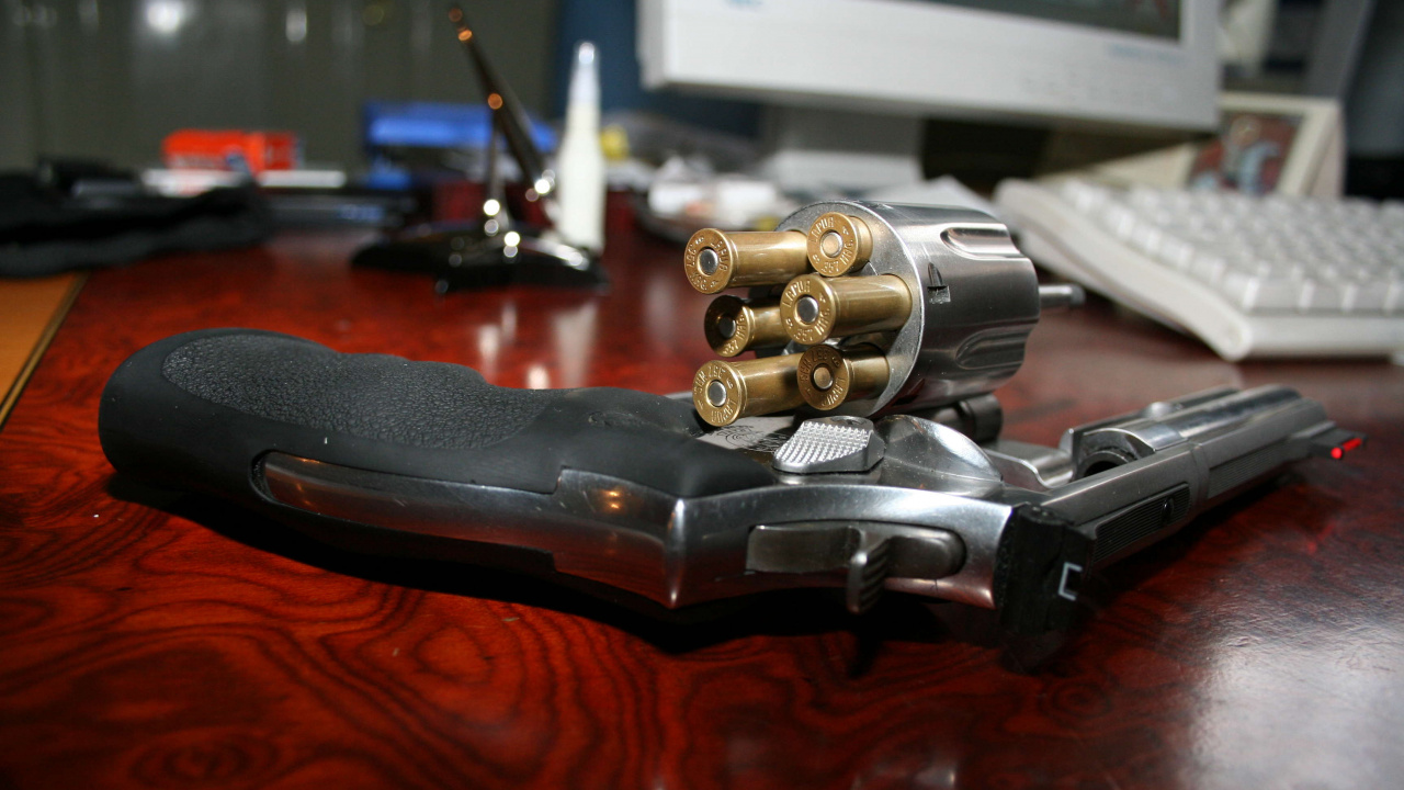 Обои 1280x720 орудие, револьвер, триггер, пистолет, пуля, HD, HDV, 720p, 16:9 картинка