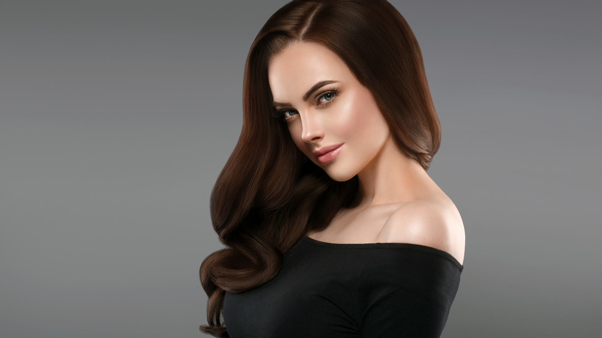 Обои 1920x1080 волосы, лицо, плечо, прическа, красота, Full HD, HDTV, 1080p 16:9 картинка