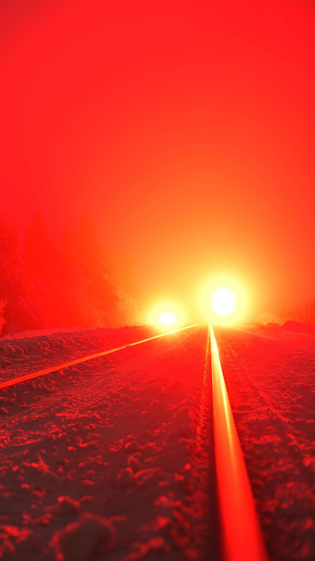 Обои железнодорожный транспорт, красный цвет, свет, дерево, вспышка на телефон Android, 1080x1920 Full HD картинки