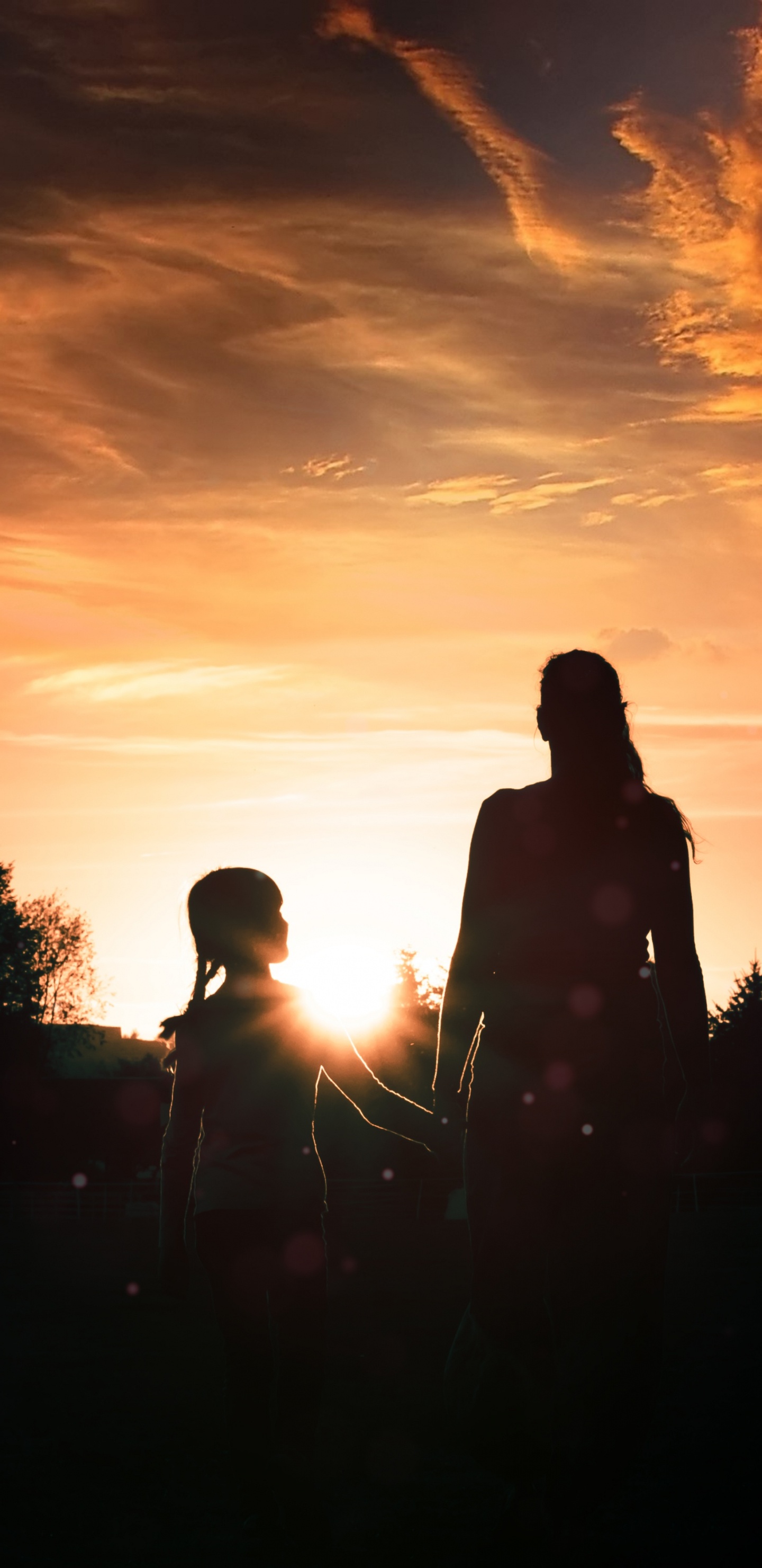 Обои вечер, красный цвет, дочь, сын, мать для Samsung Galaxy S8/S8+/S9/S9+/Note 8/Note 9 QHD, заставка, 1440x2960 картинка
