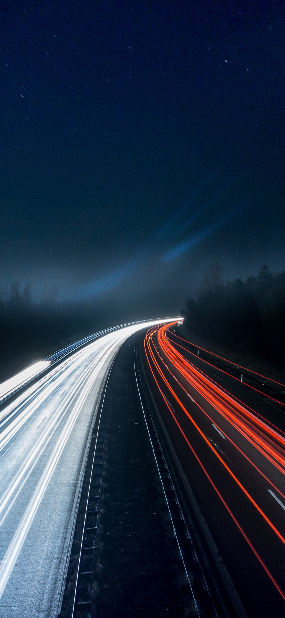 Обои дорога, магистраль, ночь, синий, природа для iPhone X / XS, заставка, 1125x2436 картинка
